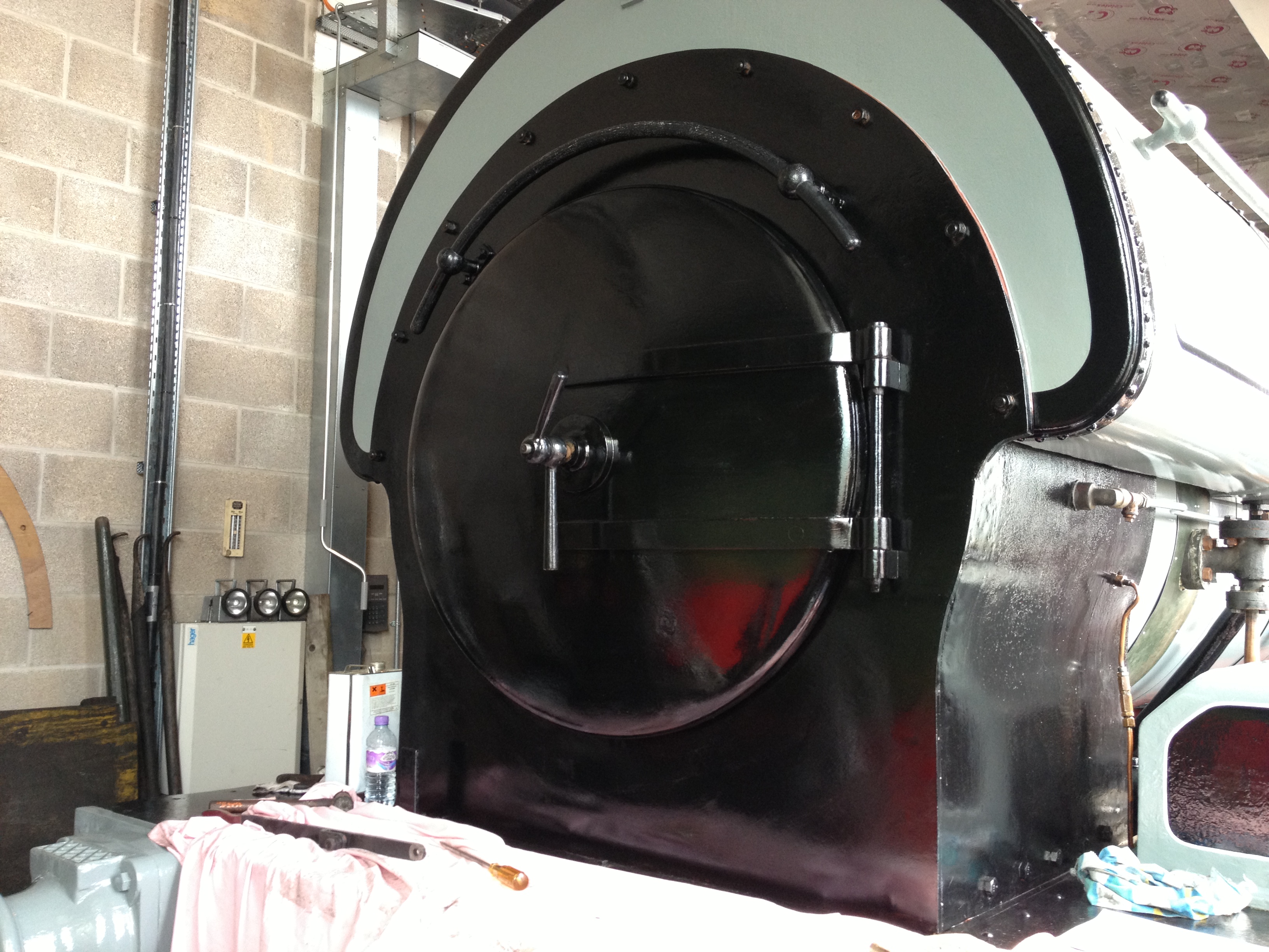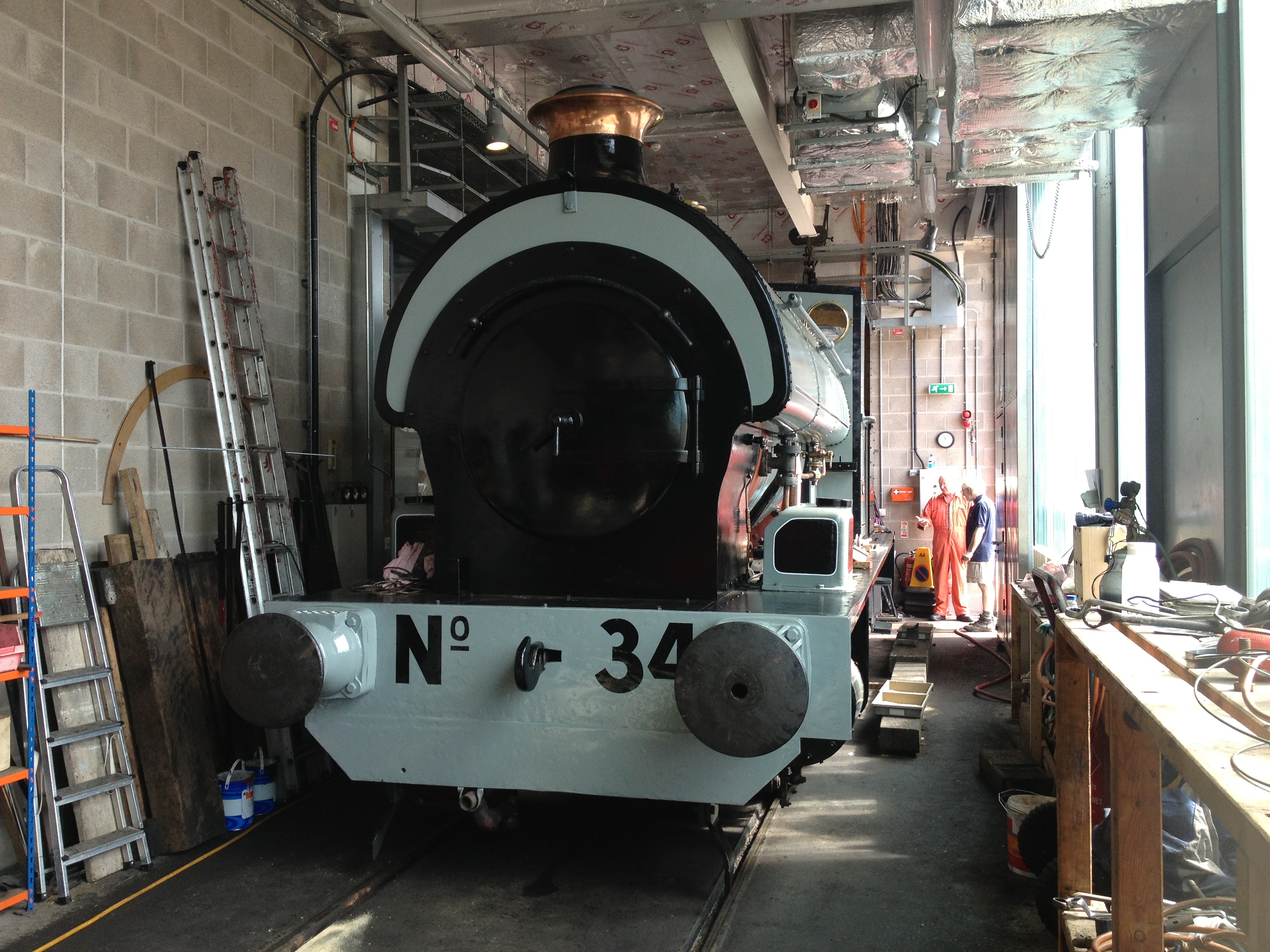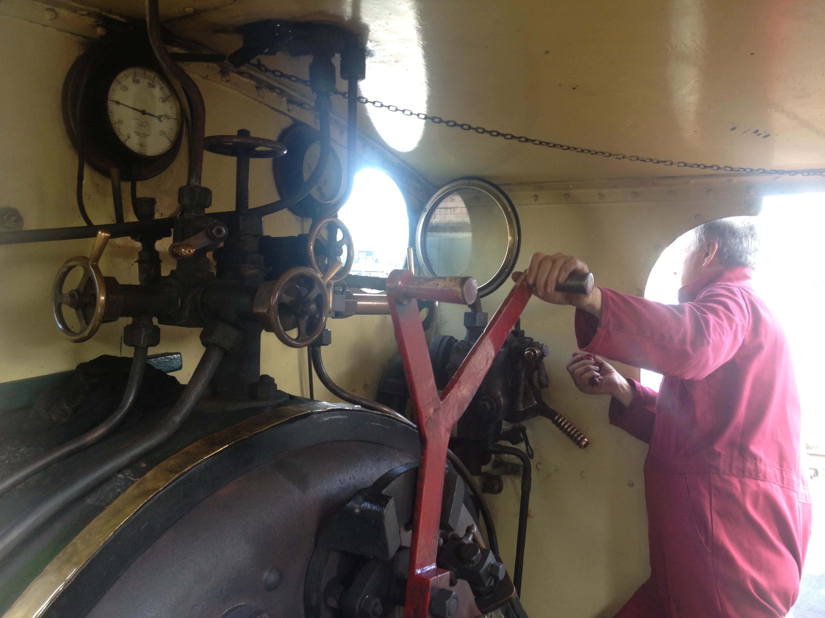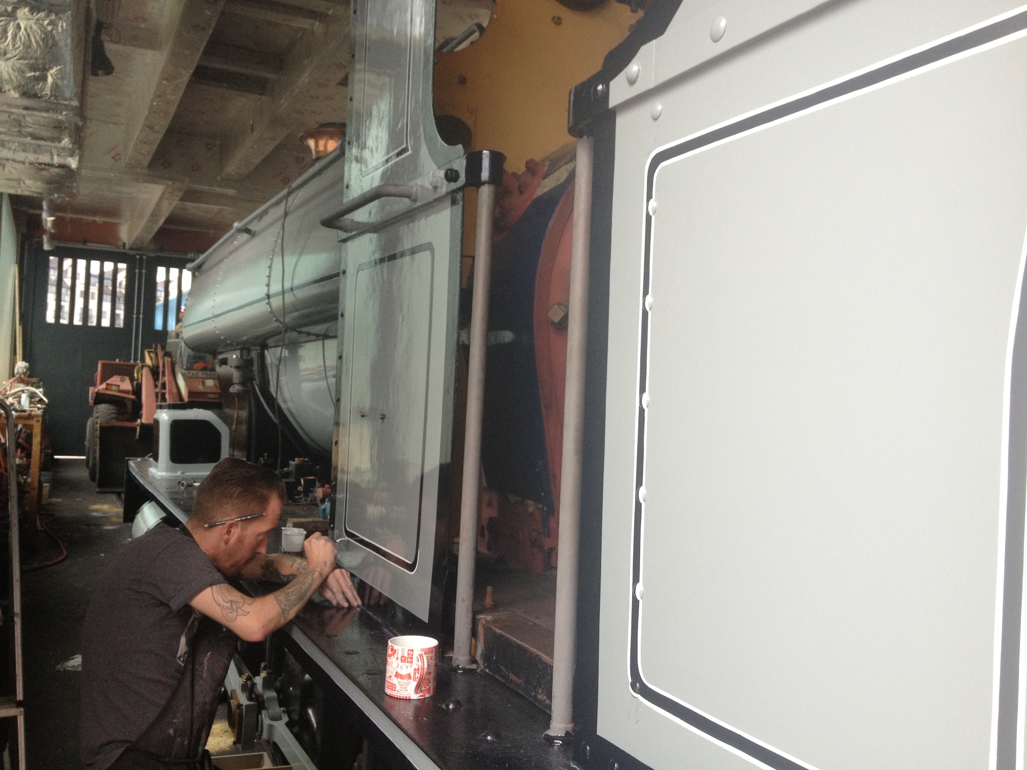 As steam was raised outside the shed, I was tasked with polishing up some of the brasswork, including climbing up on the saddle tank to do the whistles, safety valve cover and chimney cap.