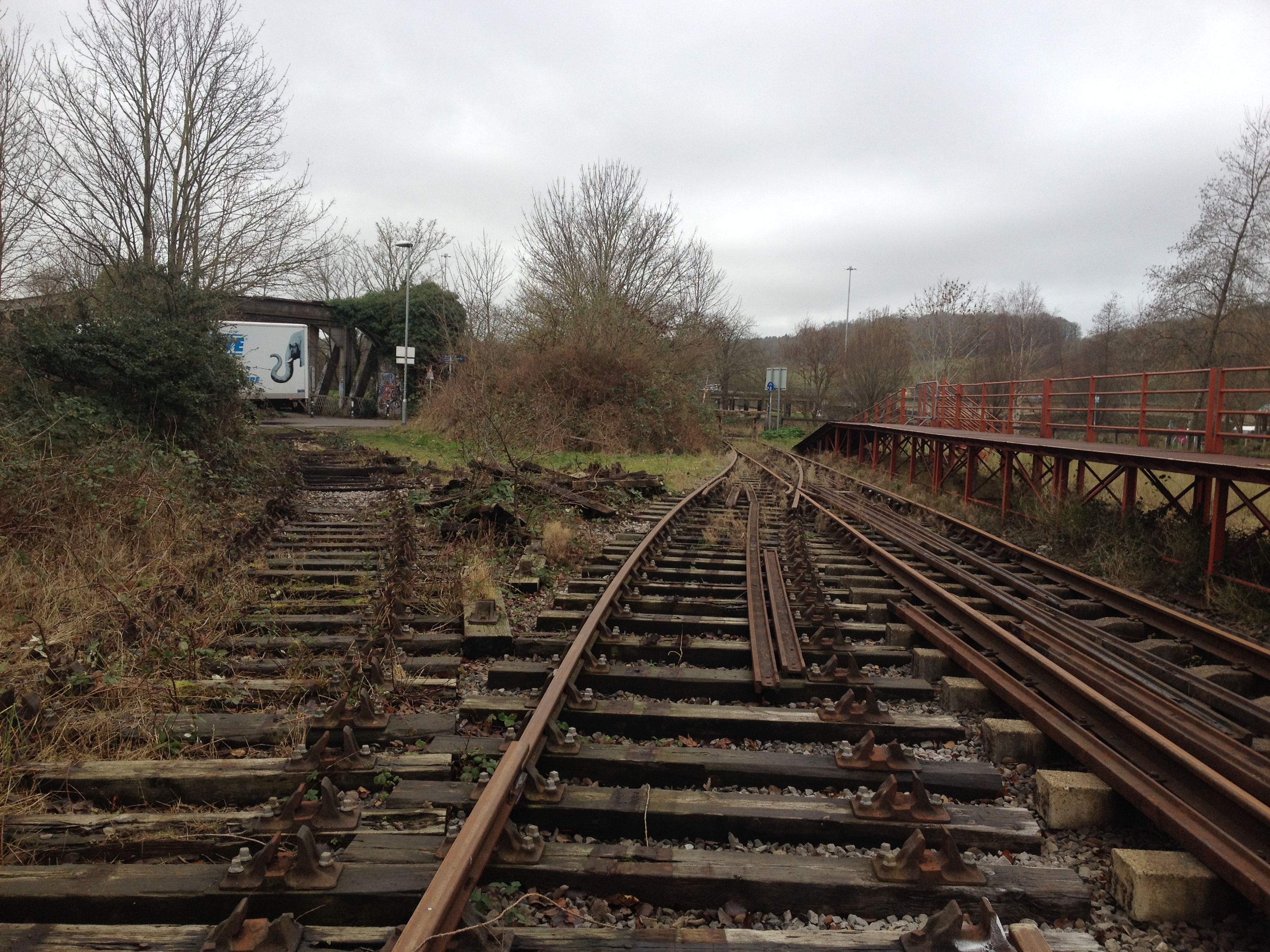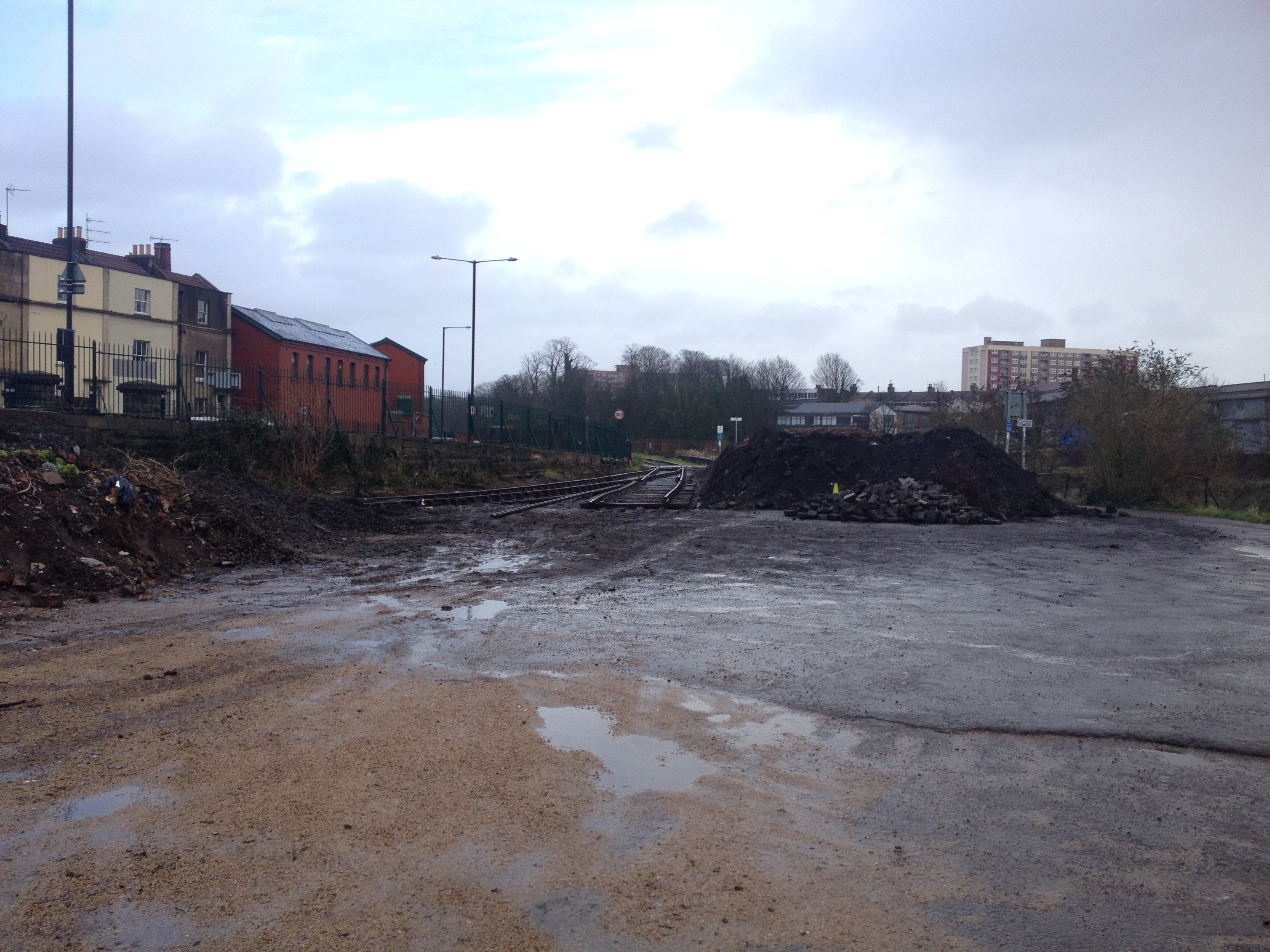 The foreground is where the spur to Ashton Meadows used to run – this is planned to form part of the Metrobus route