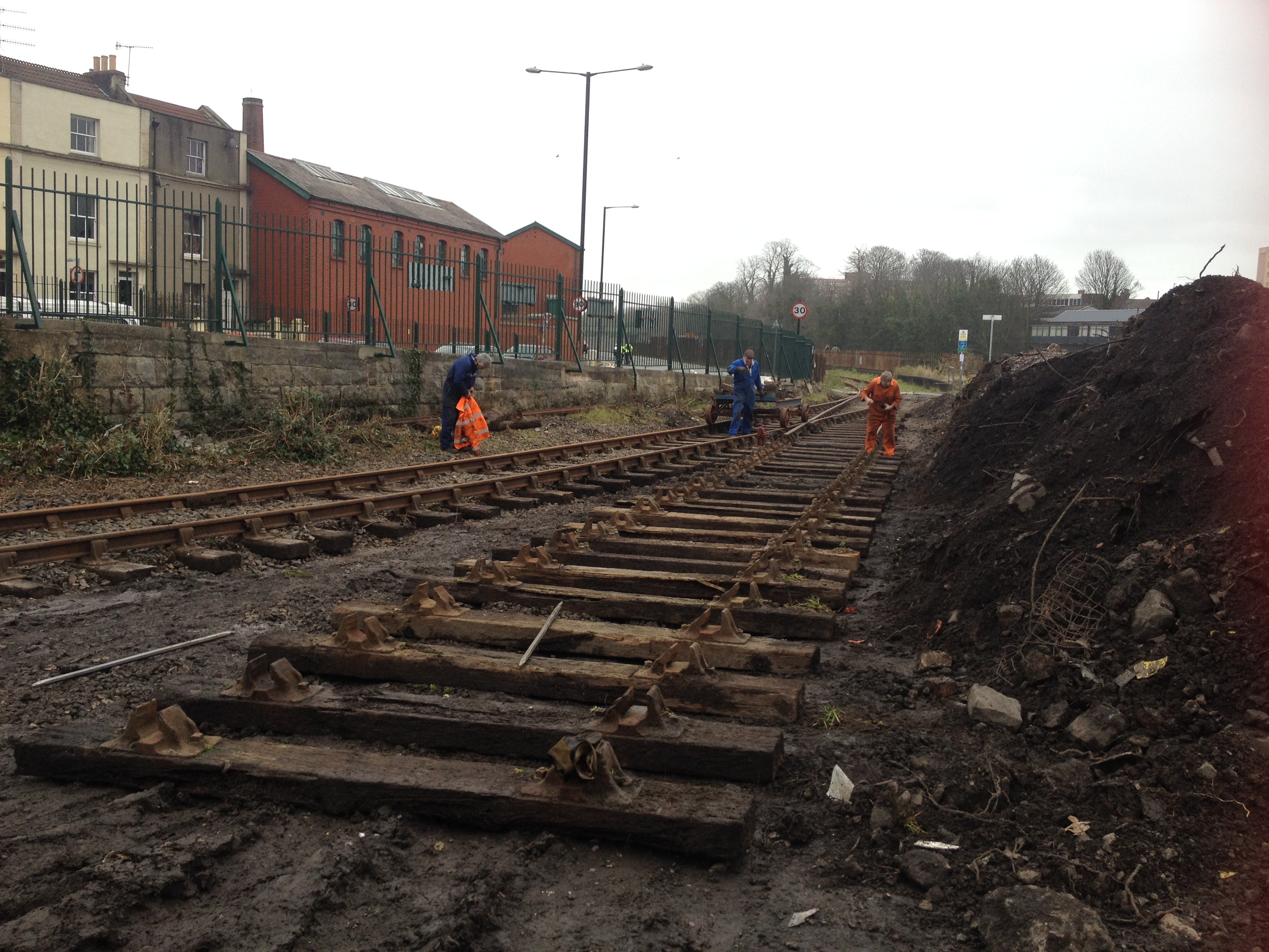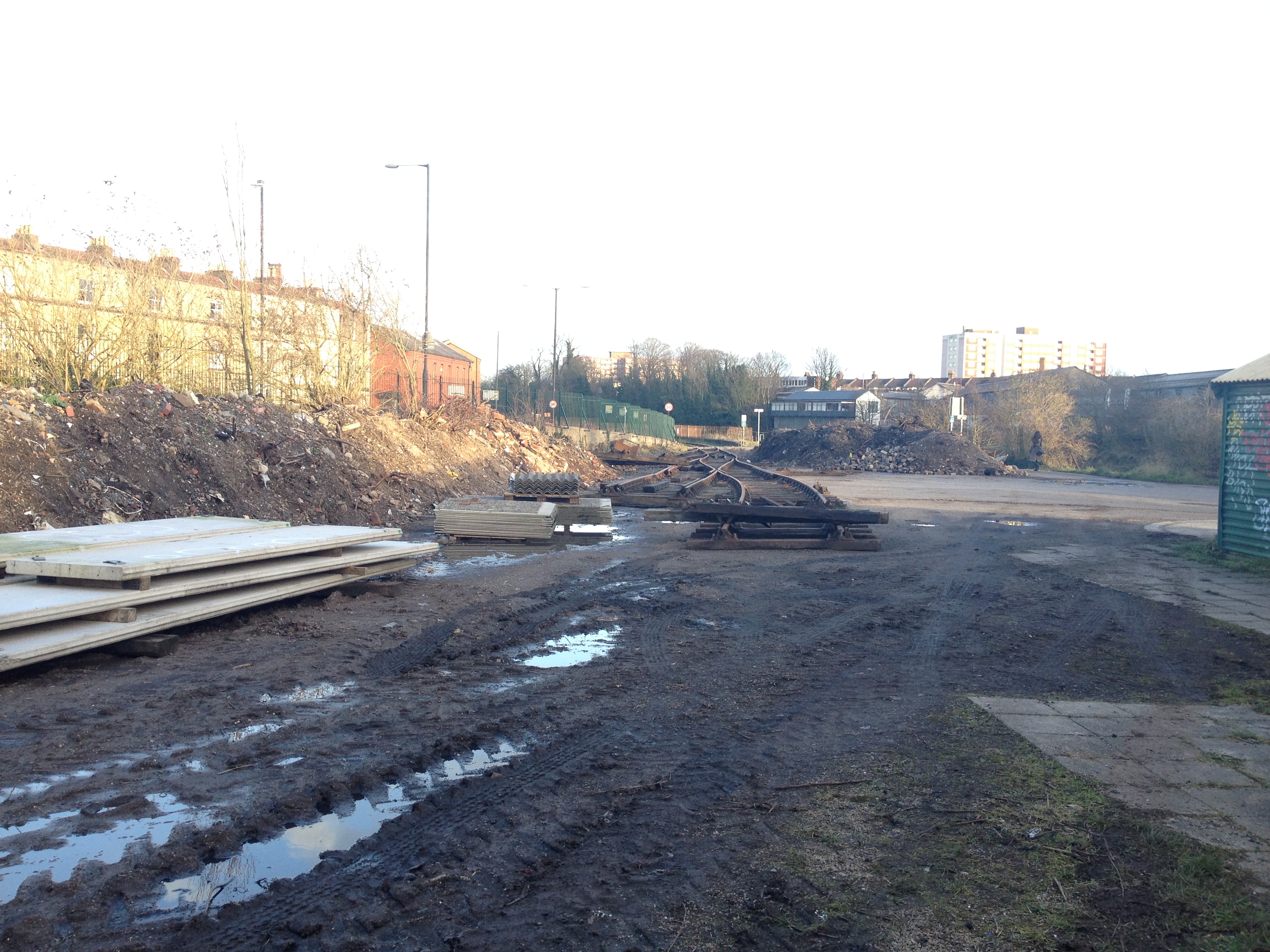 Meanwhile, round the bend, the pointwork salvaged from defunct lines is being relaid at the end of Cumberland Road.