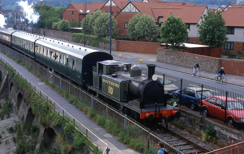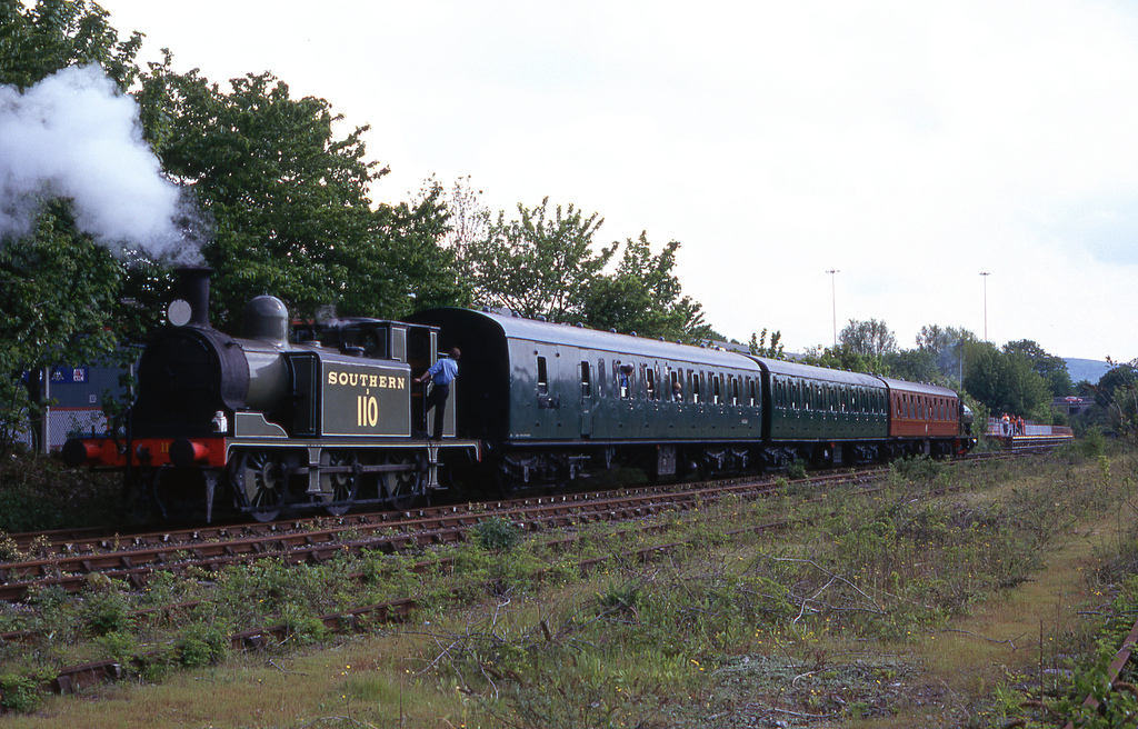 From the 24-27th May 1996, Bristol Harbour was host to the International Festival of the Sea. This was a huge event featuring many guest ships and attractions, and of course the BHR played a part. A shining and fully-lined out ‘Henbury’ was joined by LB&SCR E1 class 0-6-0T No.B110, then based at the East Somerset Railway (Now being restored to service on the Isle of Wight as No.W2 ‘Yarmouth’). The two locos operated a shuttle service between the station at Ashton Meadows and the Bristol Industrial Museum with 3 loaned coaches.