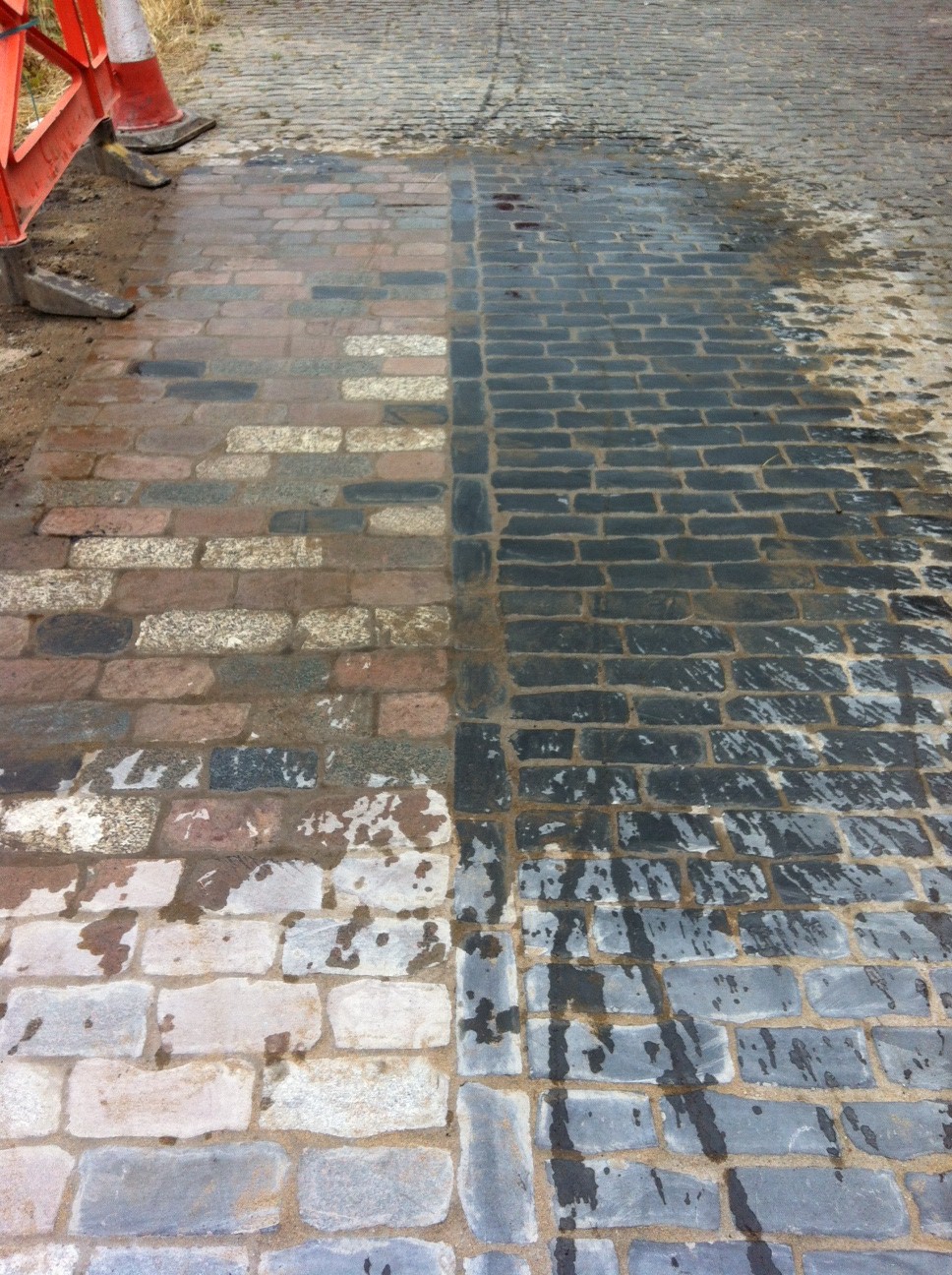 Here are a couple of photos of the ‘new’ cobbles alongside the old ones