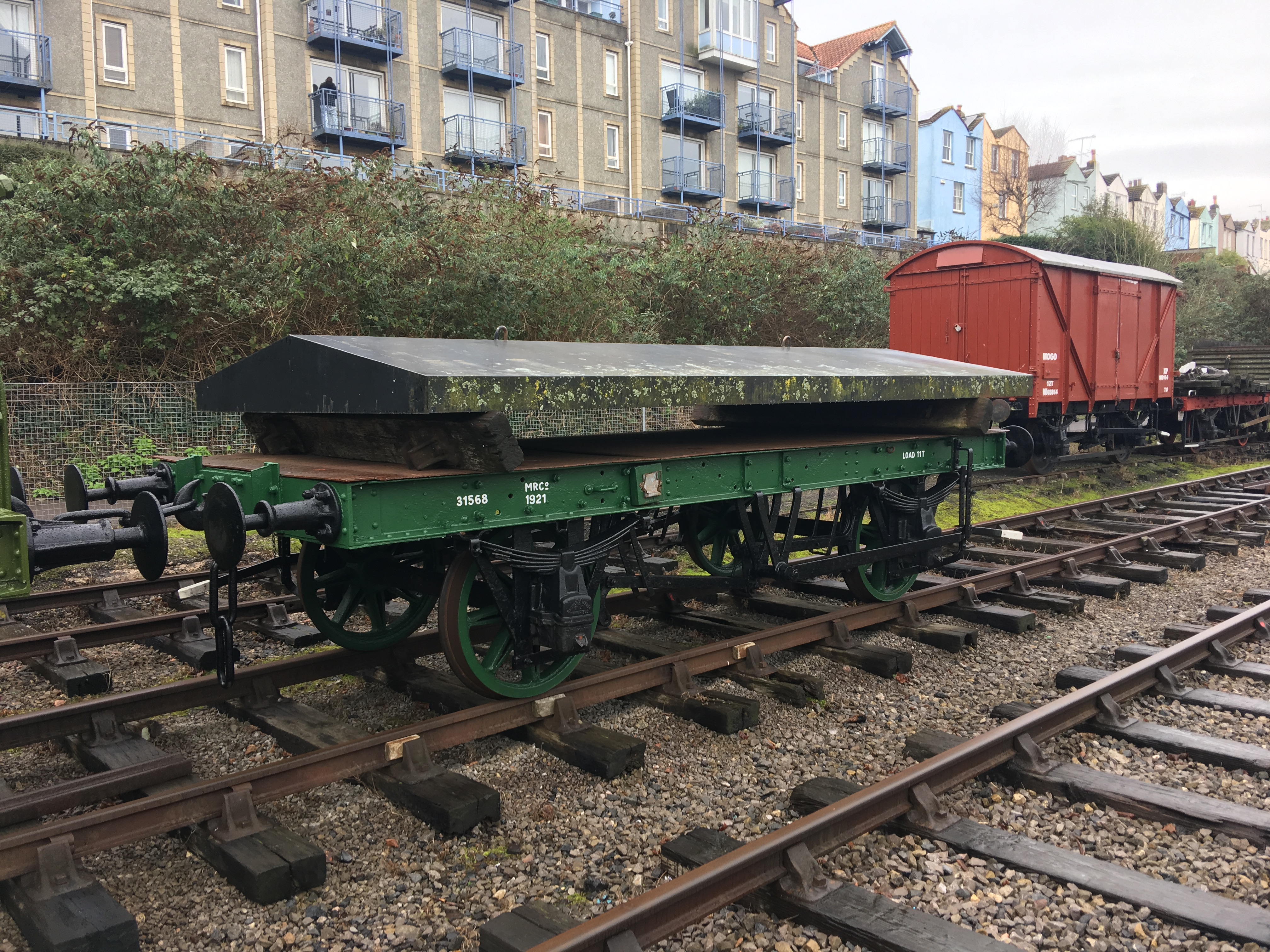 ex-PBA Flat wagon restored, Jan 2019 Published January 25, 2019 at 4032 × 3024 in More wagon restorations ex-PBA tank wagon chassis in use as a flat wagon