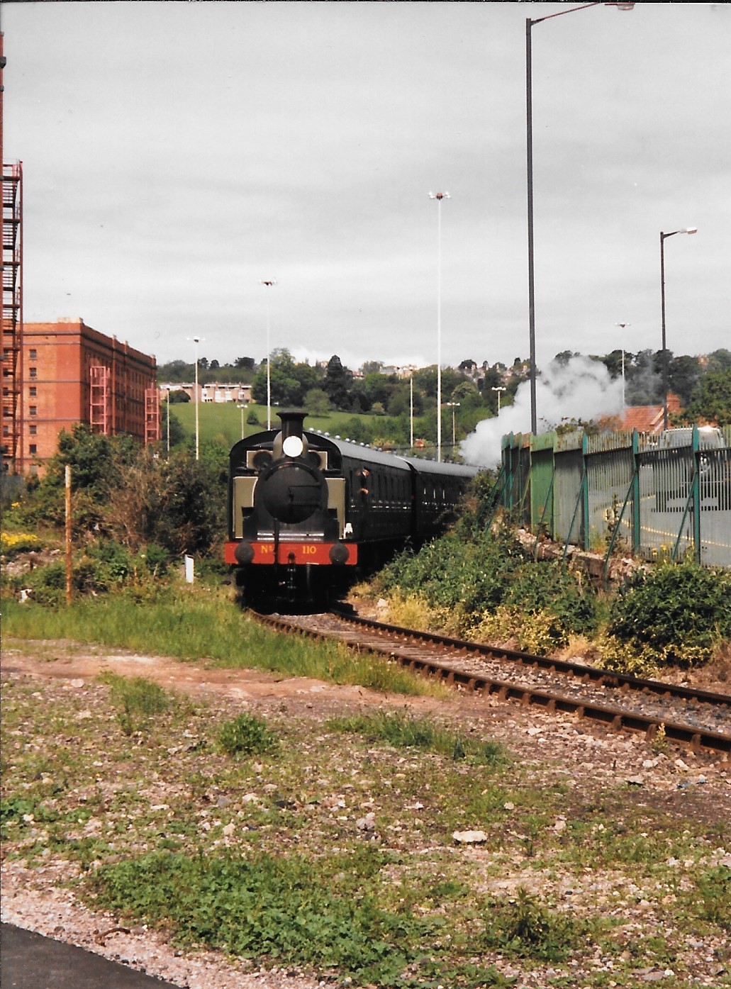 From the 24-27th May 1996, Bristol Harbour was host to the International Festival of the Sea. This was a huge event featuring many guest ships and attractions, and of course the BHR played a part. A shining and fully-lined out ‘Henbury’ and ‘Portbury’ were joined by LB&SCR E1 class 0-6-0T No.B110, then based at the East Somerset Railway (Now being restored to service on the Isle of Wight as No.W2 ‘Yarmouth’). The two locos operated a shuttle service between the station at Ashton Meadows and the Bristol Industrial Museum with 3 loaned coaches.