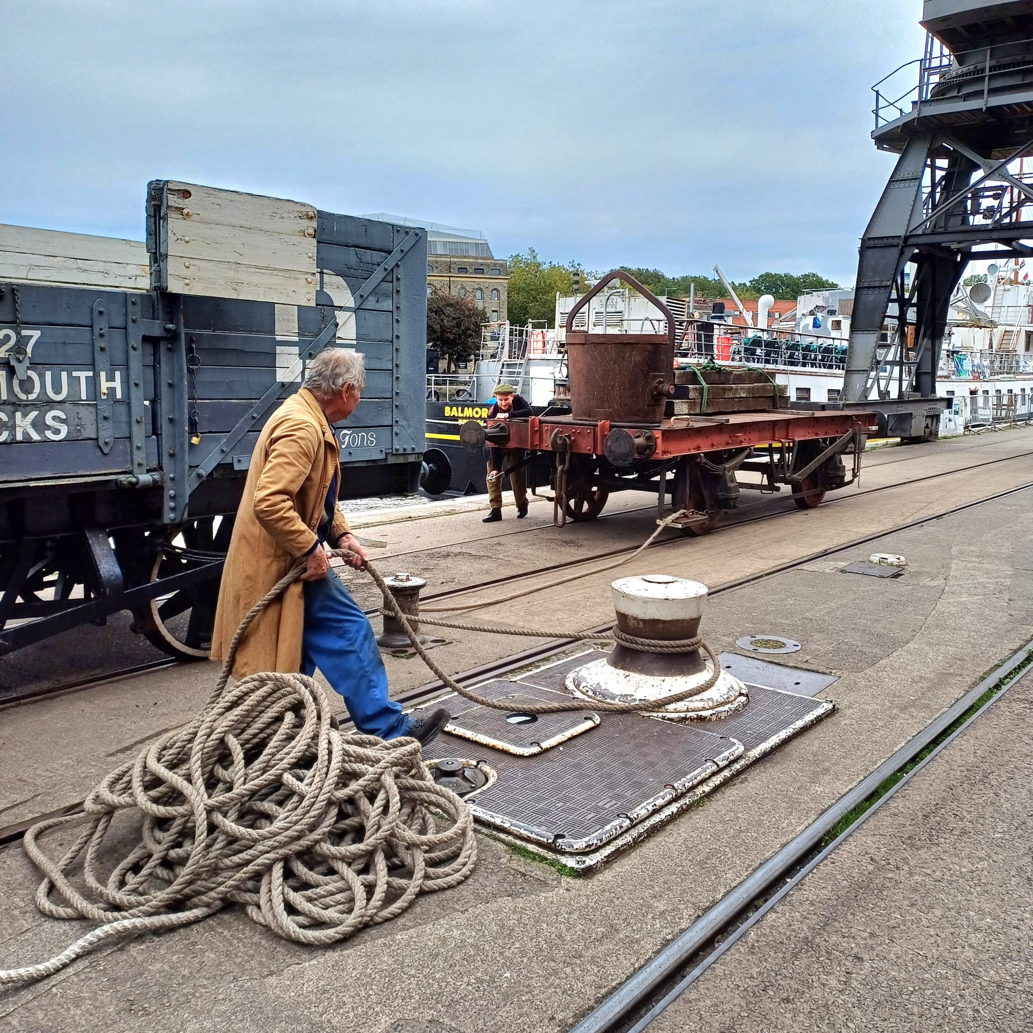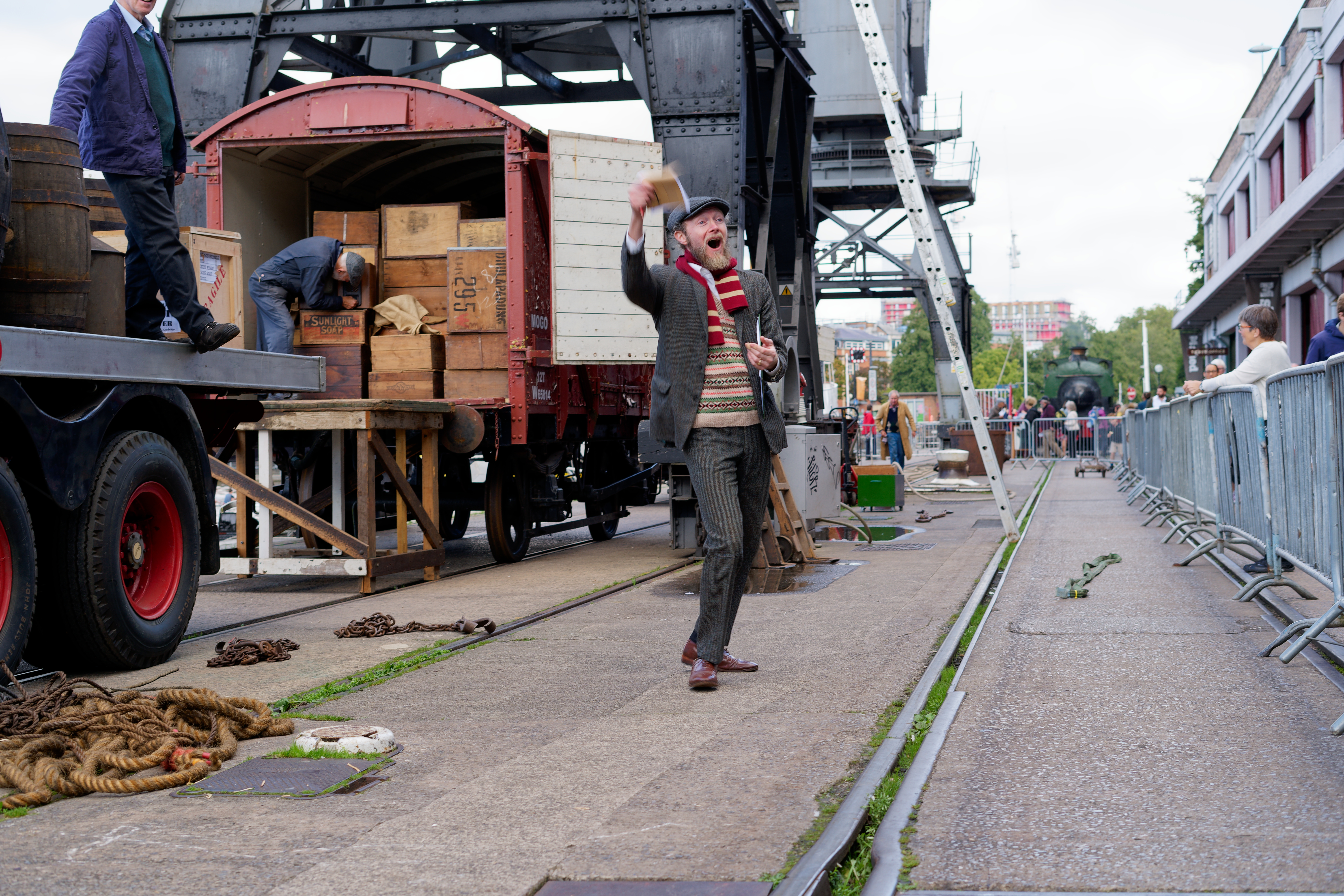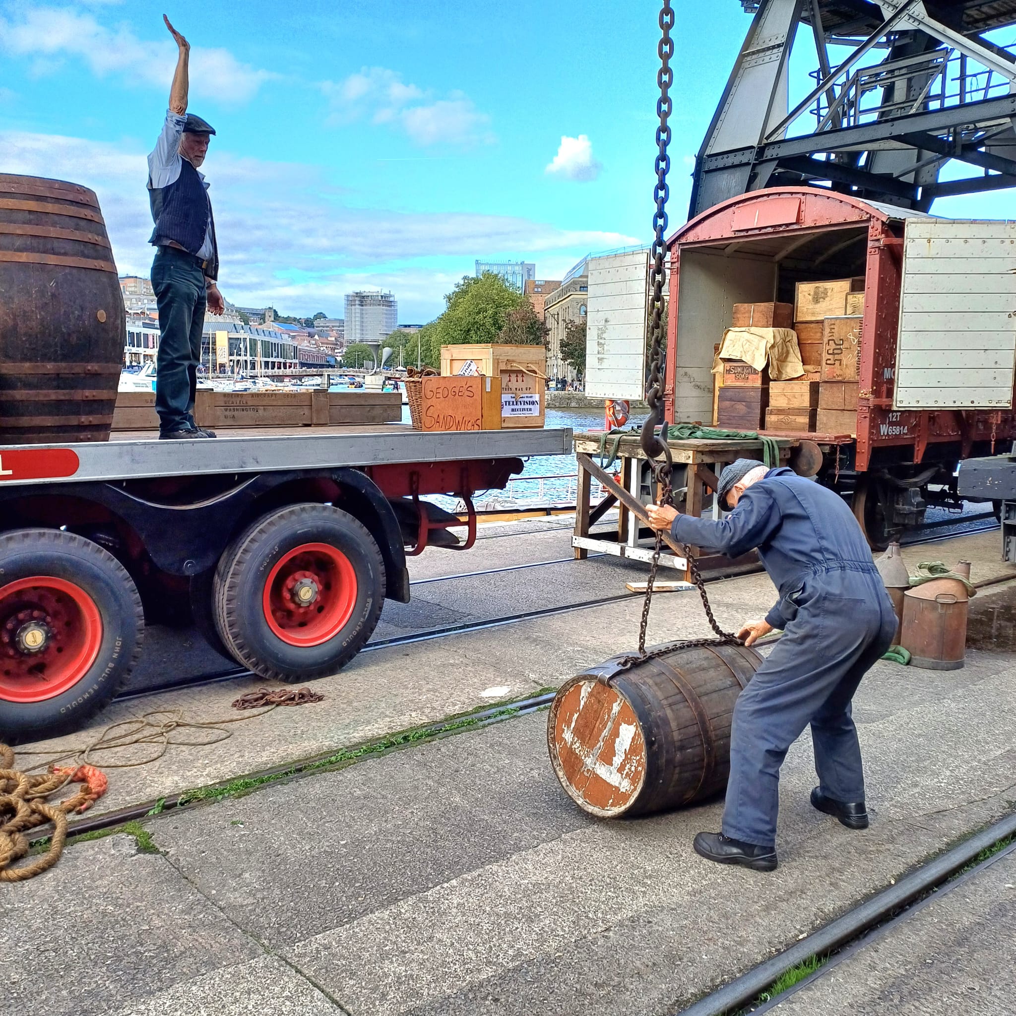 One of my favourite events of the year, DOCKS HERITAGE WEEKEND took place over 28th and 29th September. This event featured our friends at the Show of Strength Theatre Company once again, this time with a new storyline (featuring George and Sheila of course) with more jeopardy and a longer run time (and some singing!). Sheila’s ordered a new television on hire-purchase, but she’s not told George about it! Will he find out? John King was on duty giving rides around the harbour, 2 cranes were working (one for visitors and one loading the lorry), the capstan was in operation again and Henbury was in steam for cab visits. Saturday also featured live performances from the choir in L Shed.