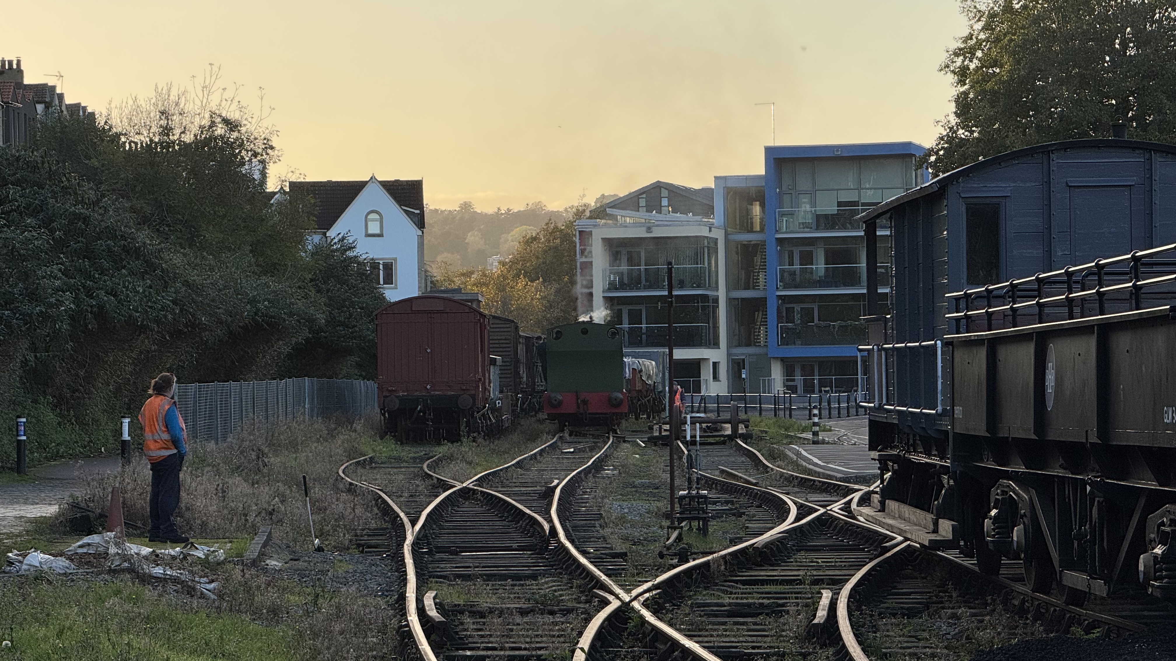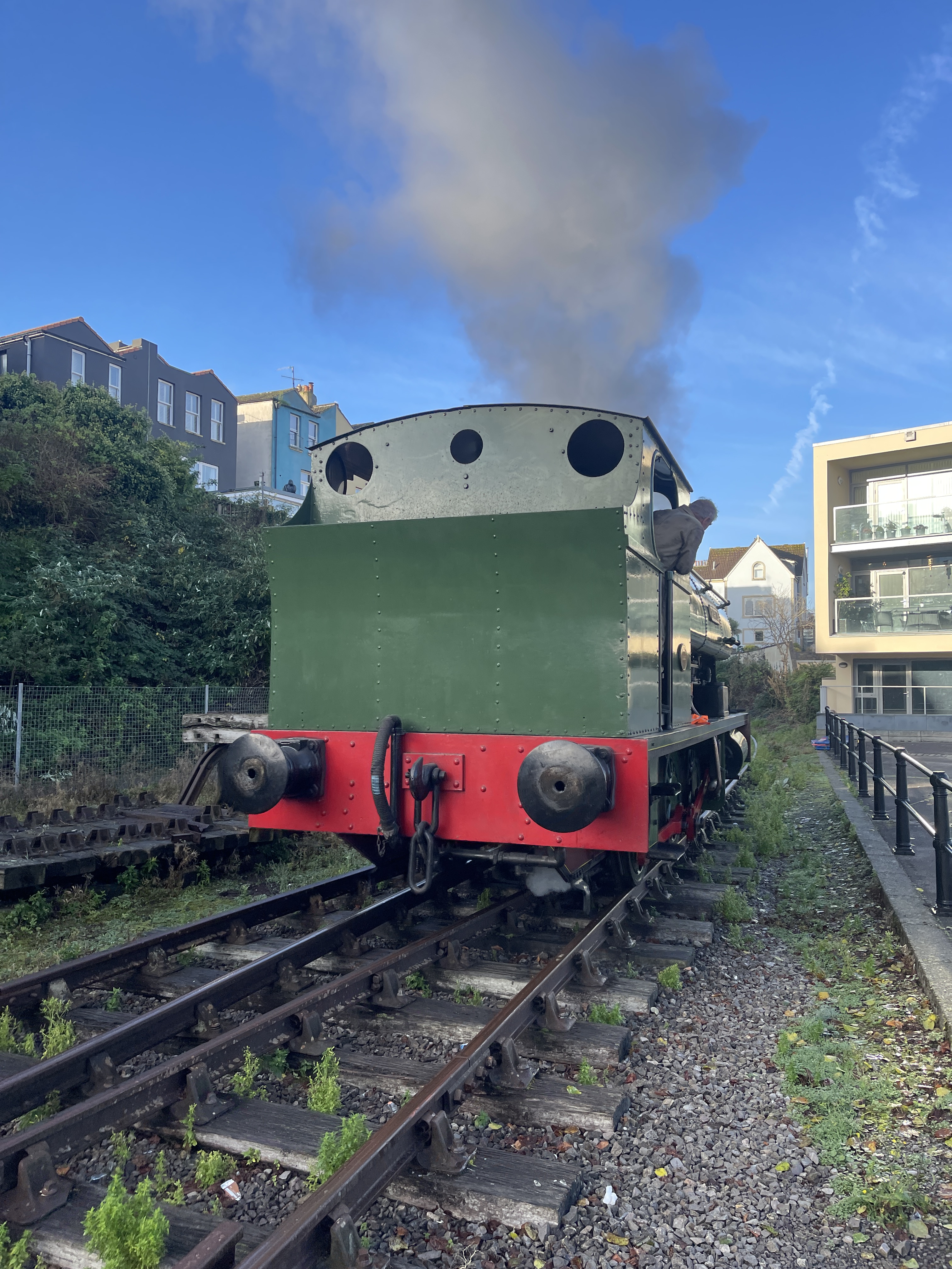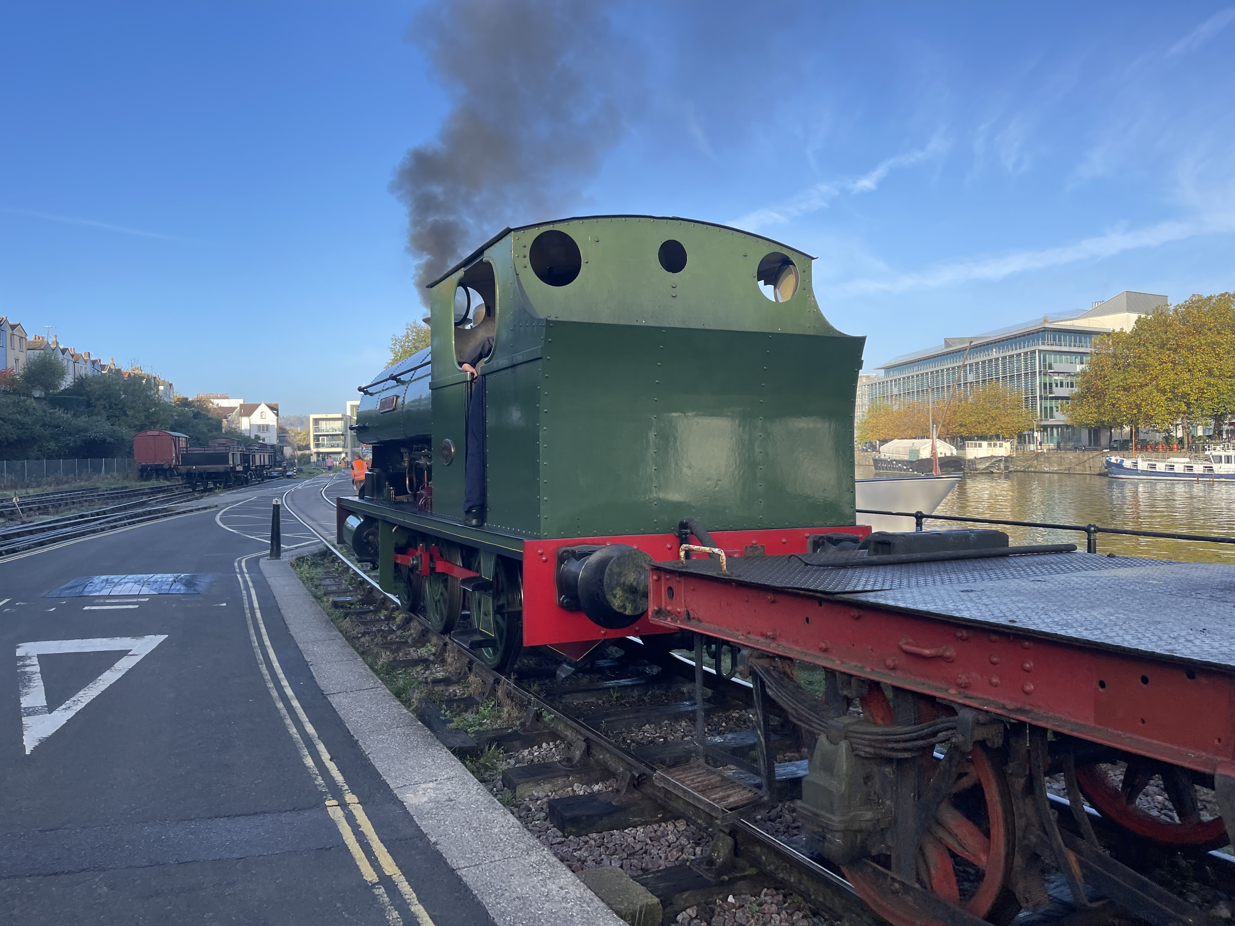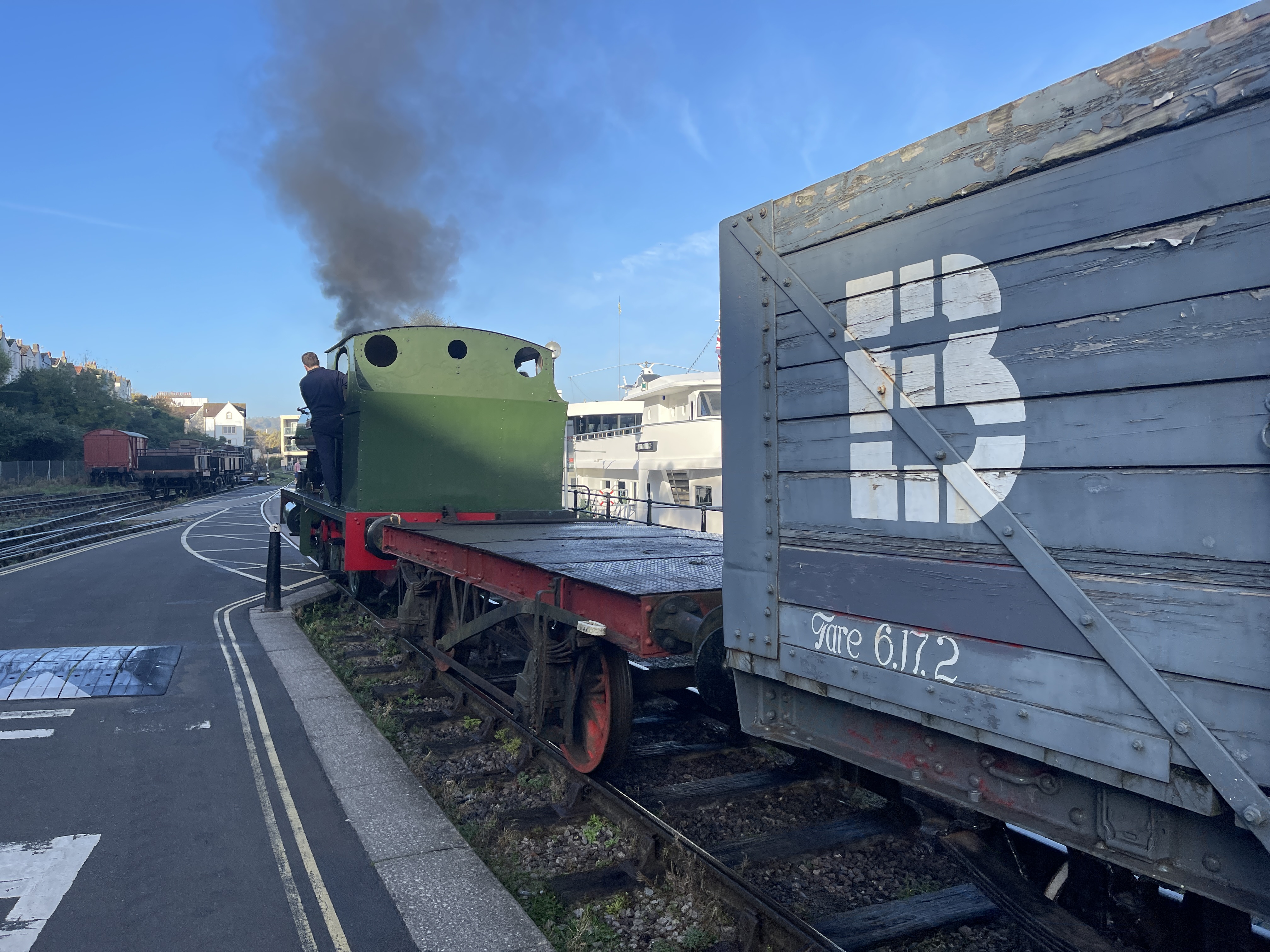 Tomorrow is the last day of passenger services on the BHR this year. This morning there was quite a bit of shunting to do to put the Toad back on the train after fulfilling its ‘waiting room’ duties for Have-A-Go week. Similarly the BD and red flat wagon were put back into the yard having been used to limit the area of quayside Henbury could shunt up and down on.