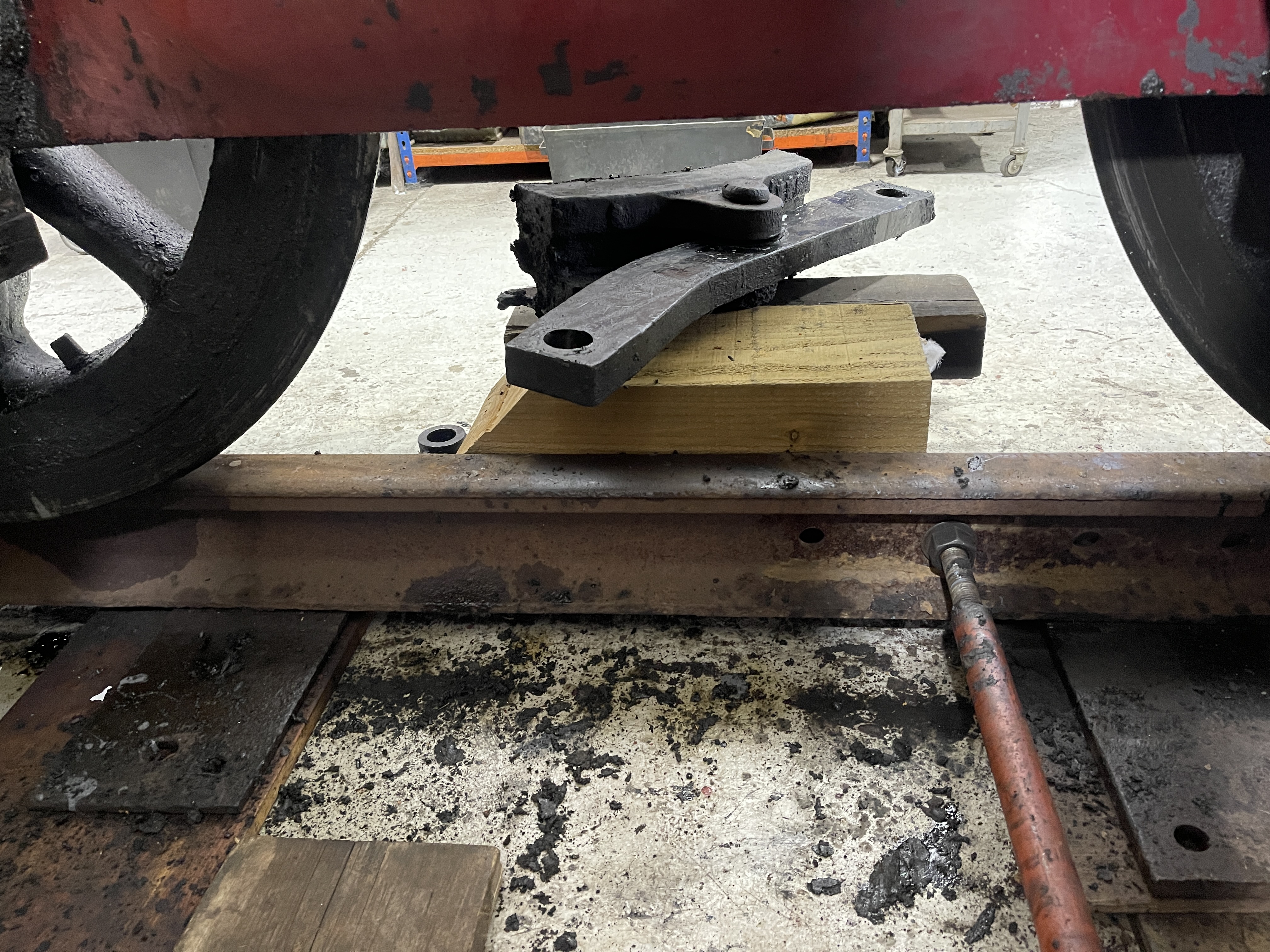Then the brake rodding was dropped out and the brake blocks and hangers removed (fronts have been left on for now until we can move the axle due to clearances on the slide bars).