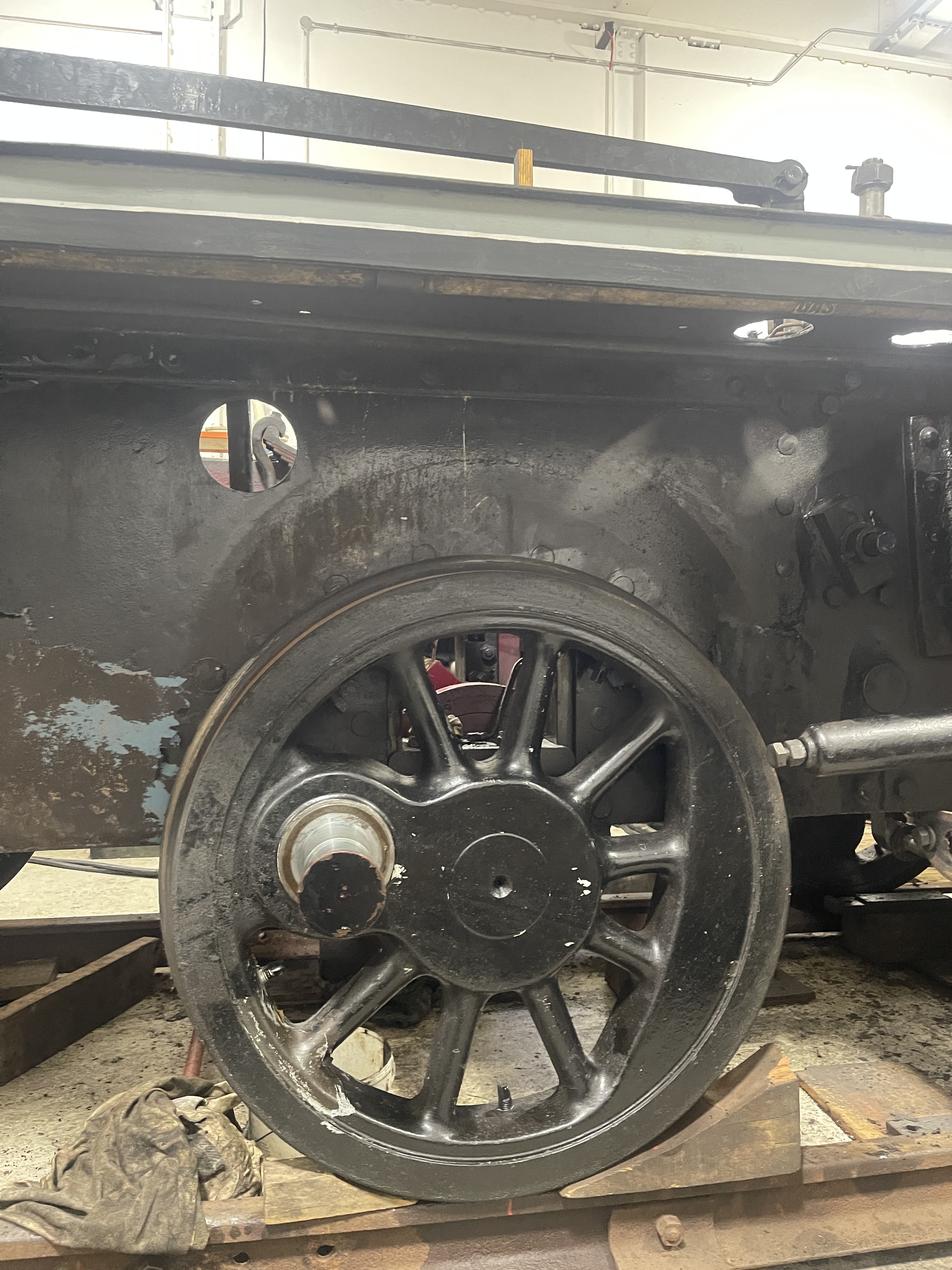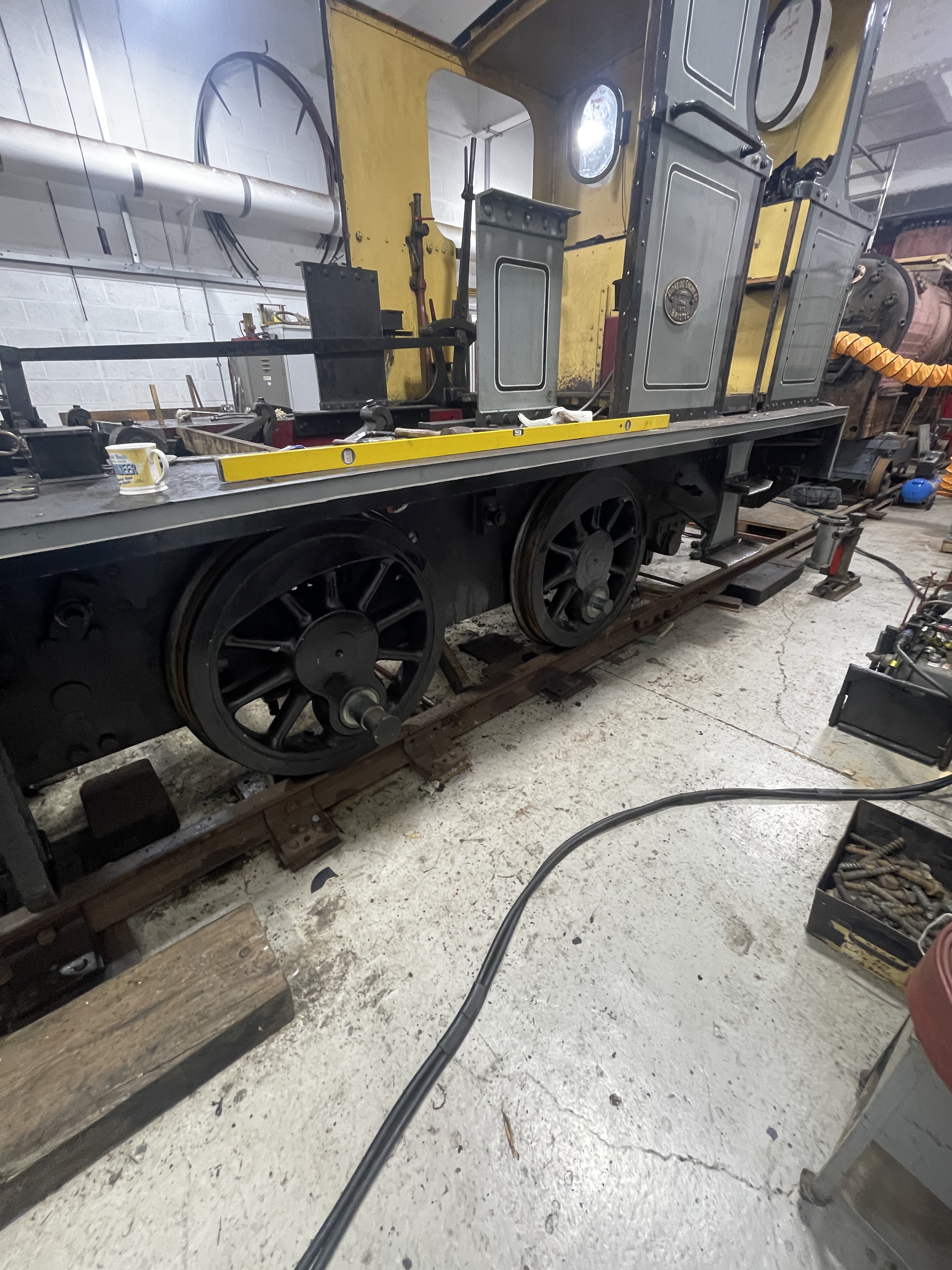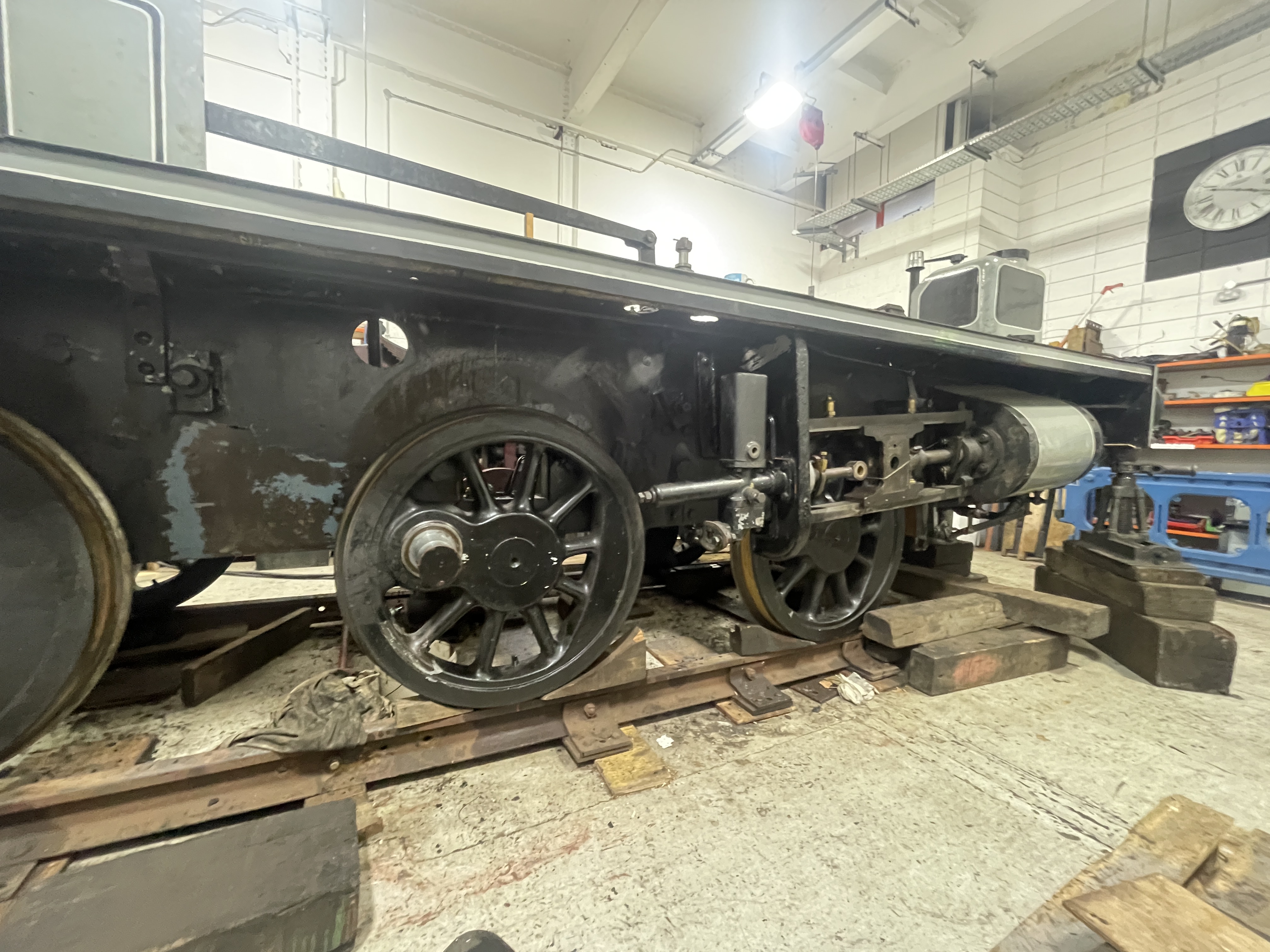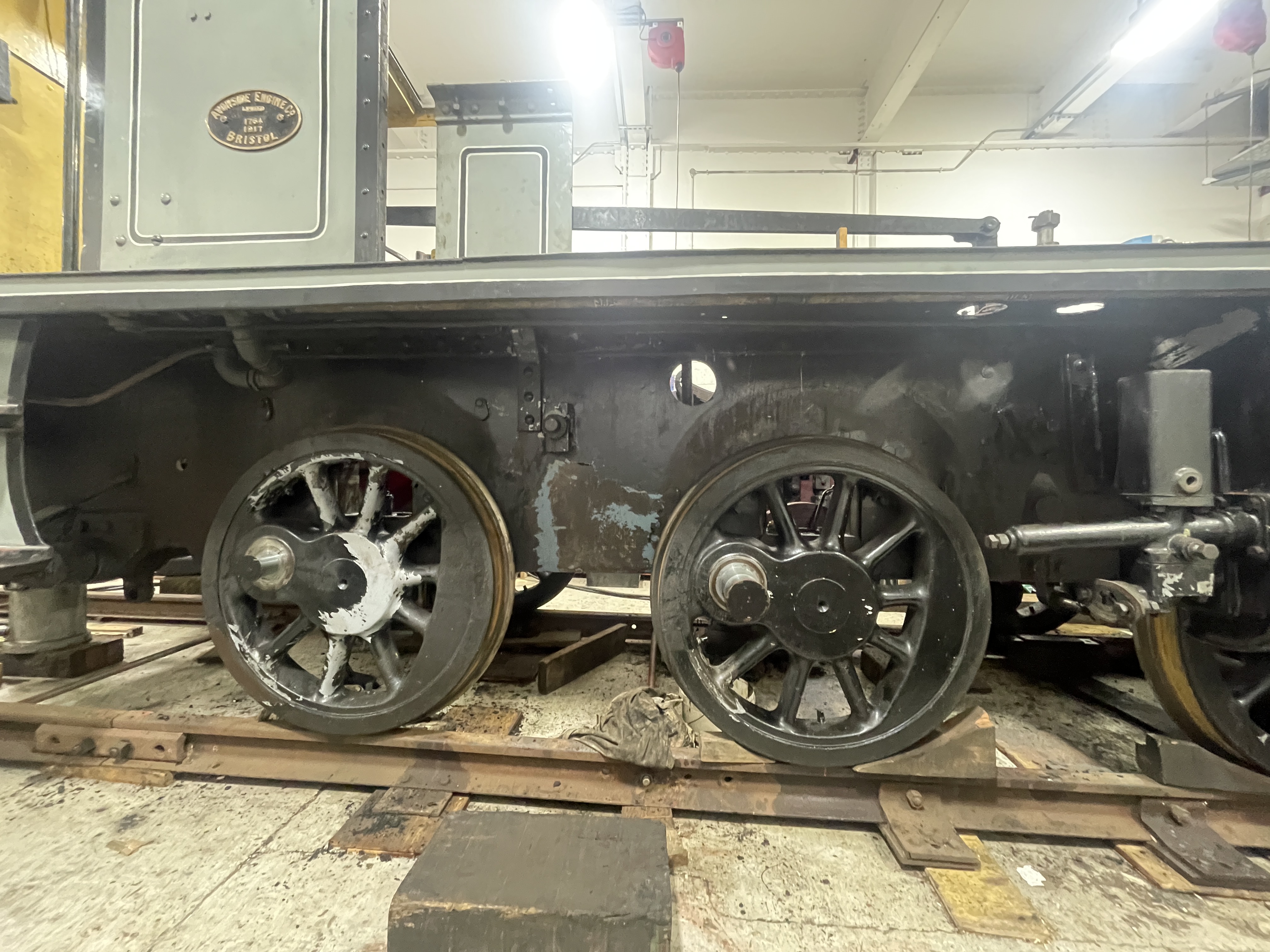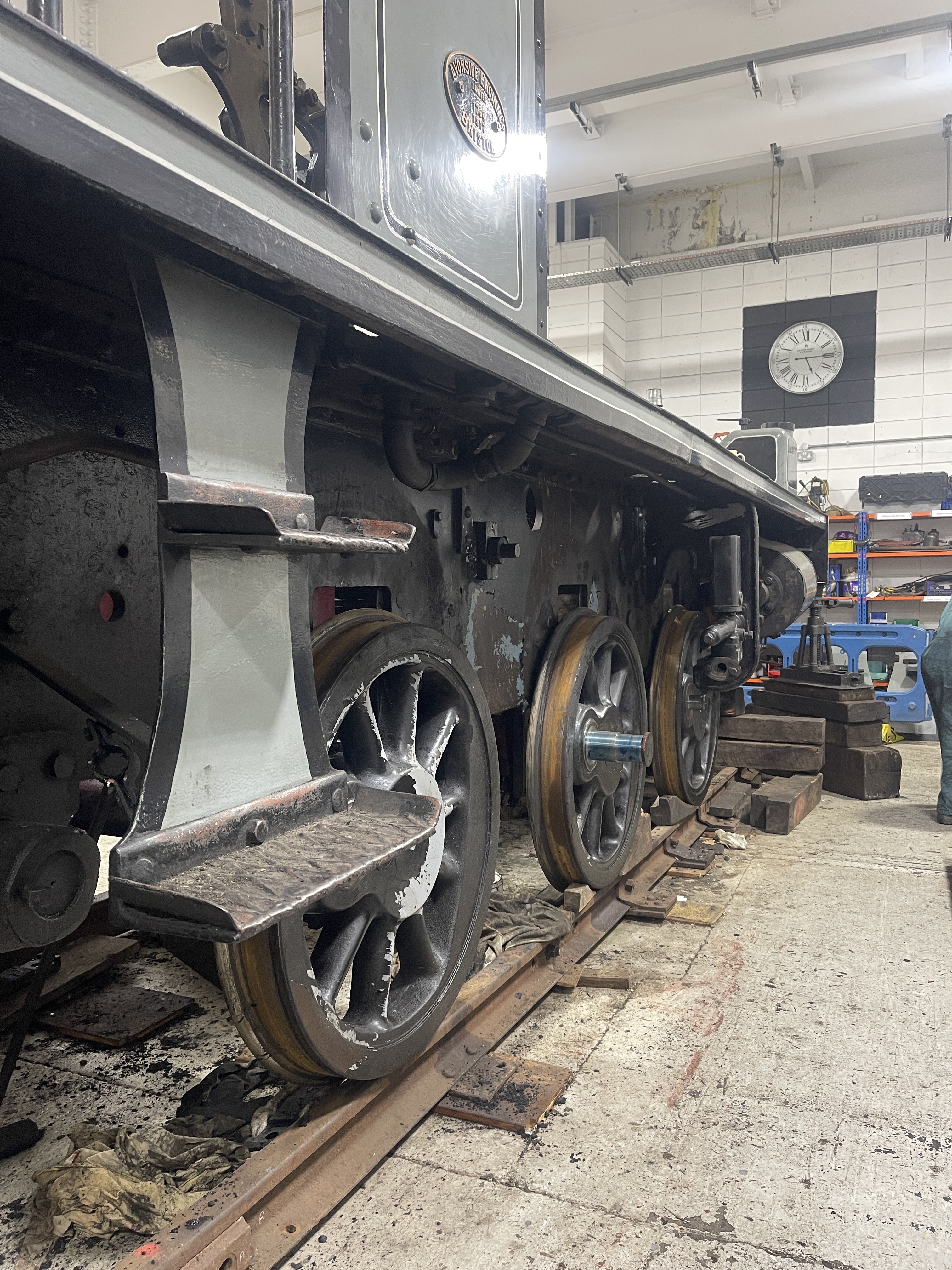 Now Portbury’s boiler has been detubed, work moves on to the next job. Today we started the process of removing the wheelsets.