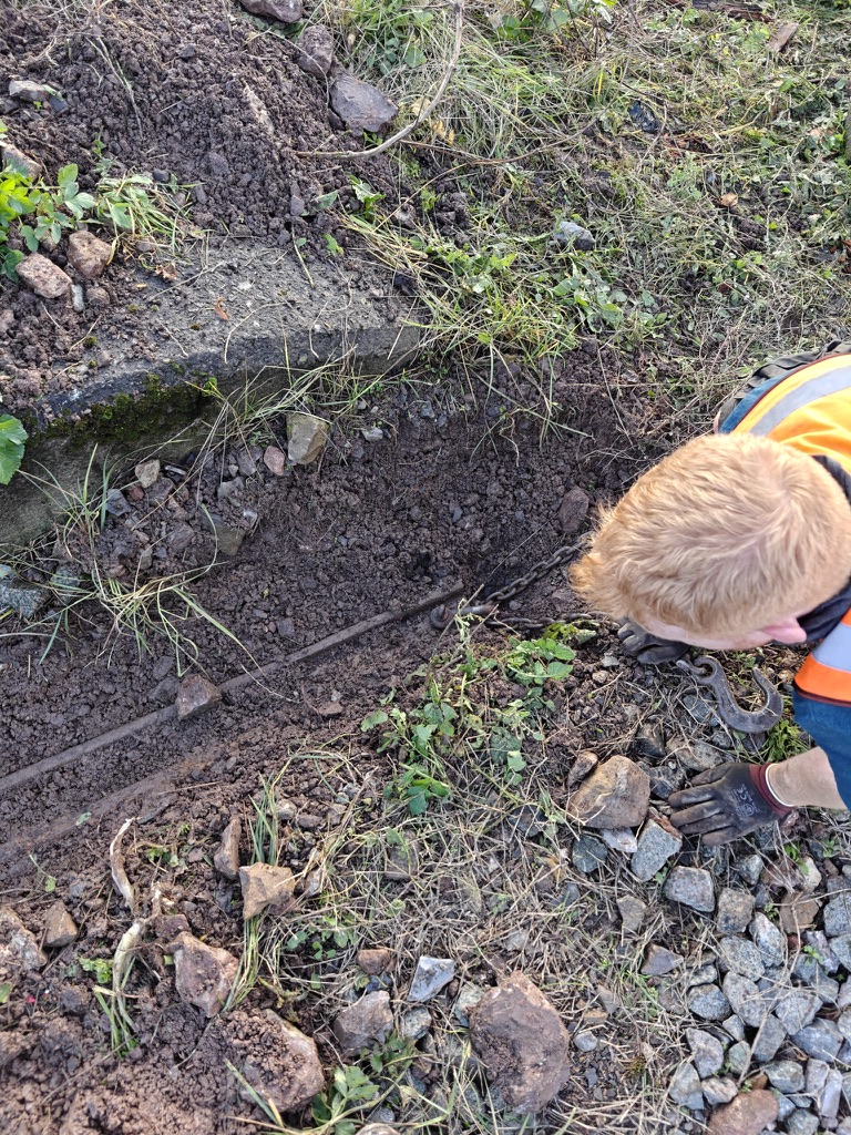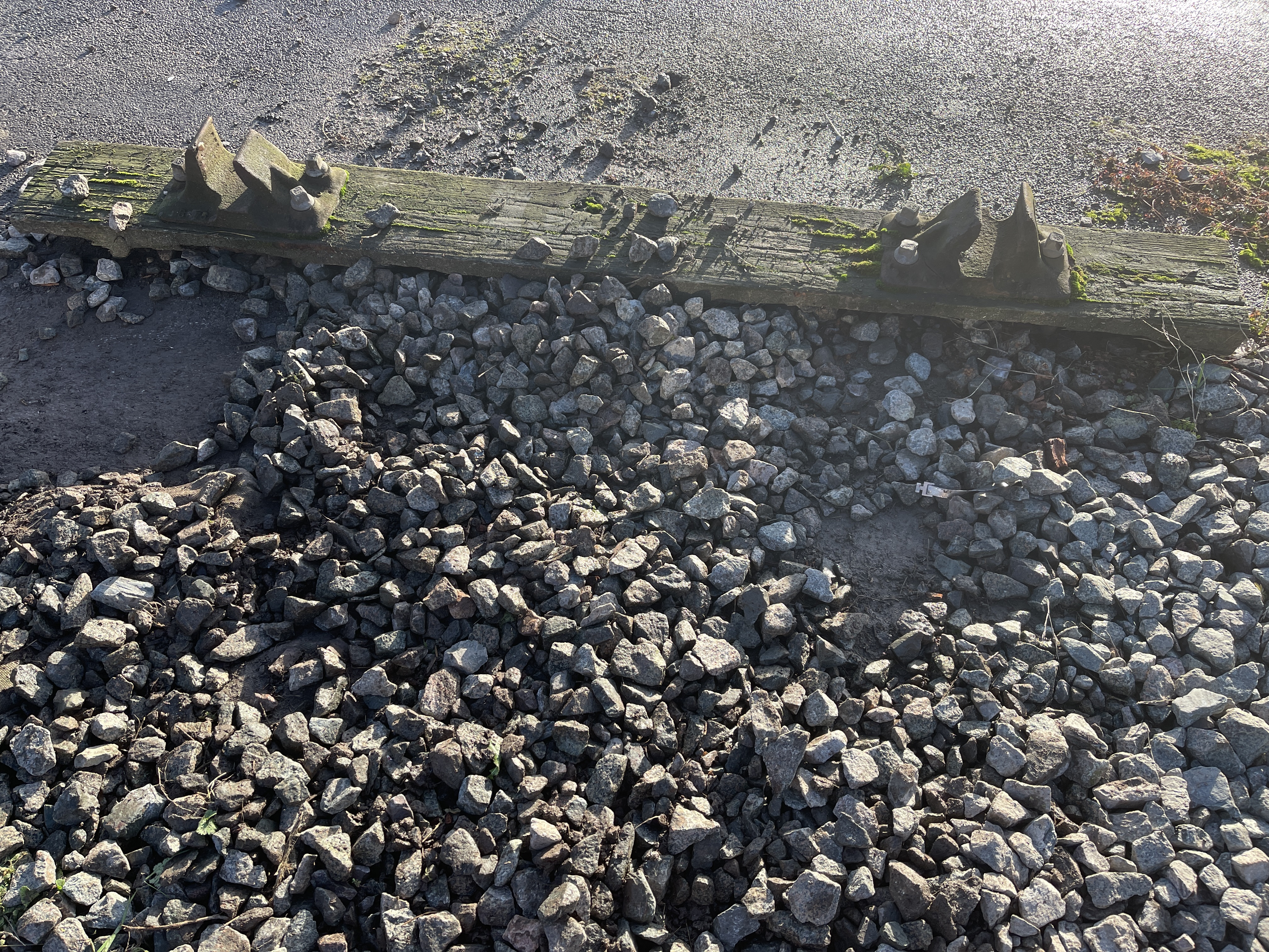 Larry brought down fresh ballast to be shovelled under the track to support it now that it’s been jacked up. Then the opportunity was taken to dig out the two rails that had been dumped in the cess 10ish years ago. They’d been there so long that they were well and truly buried!