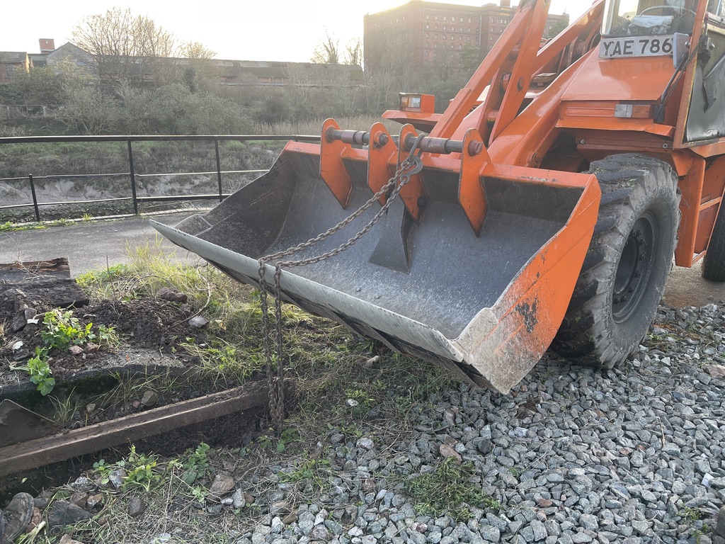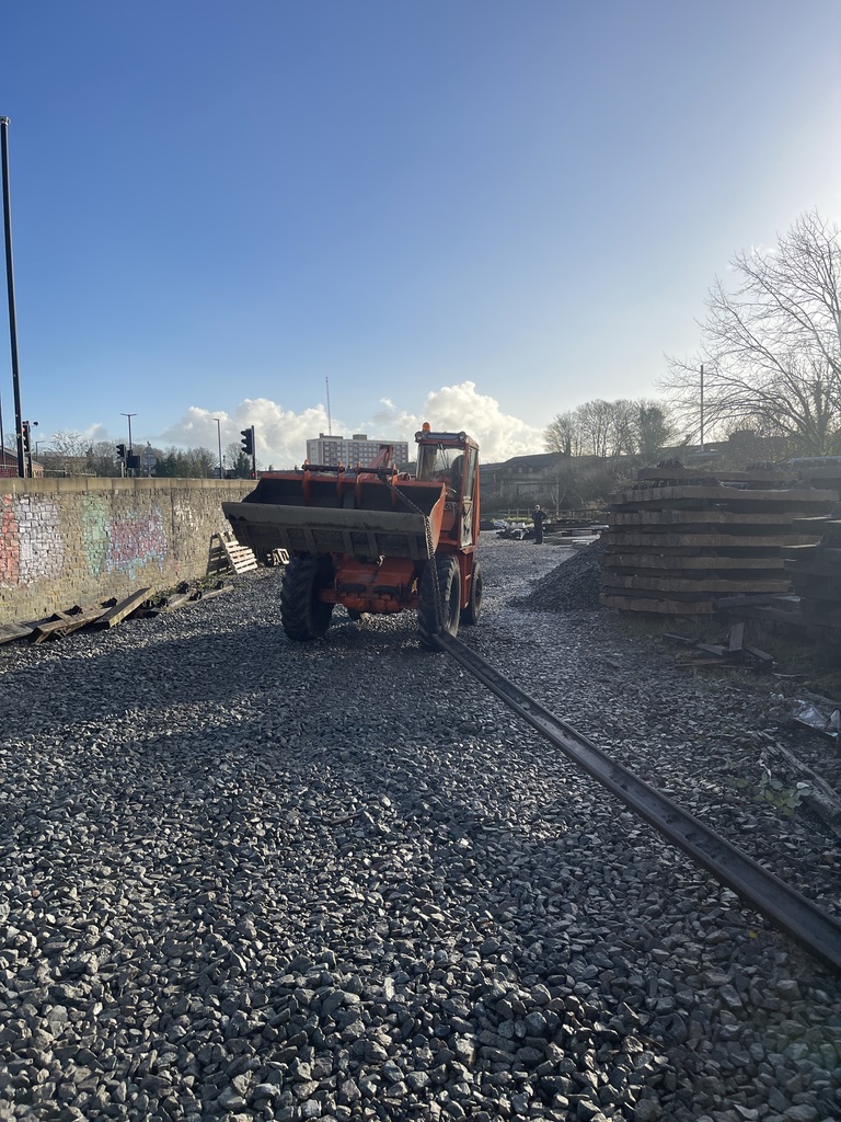 Larry’s forks have been removed again, which enabled Chris to scrape out the excess ballast from the platform area and dump it next to the sleeper piles earlier in the month.