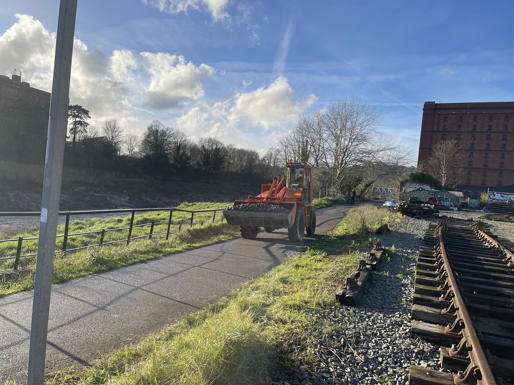 2 – Reconnect ‘the gap’ where the wall collapse in 2020 severed the line (the civil engineering has been done by contractors but the rails and sleepers have not yet gone back in).