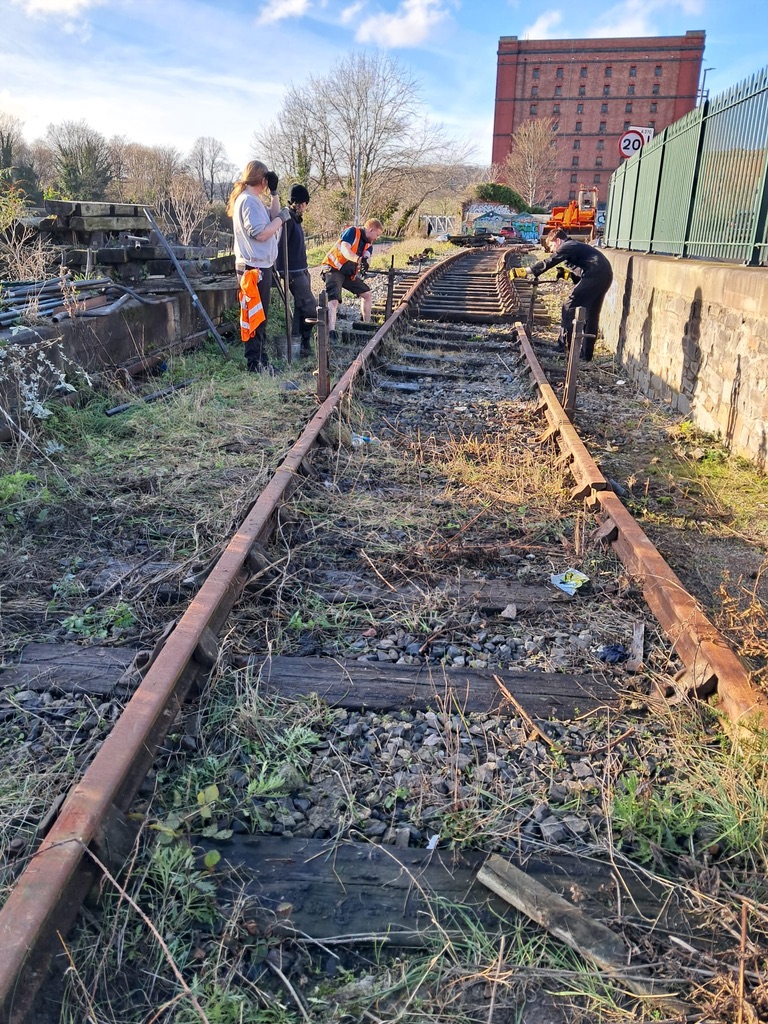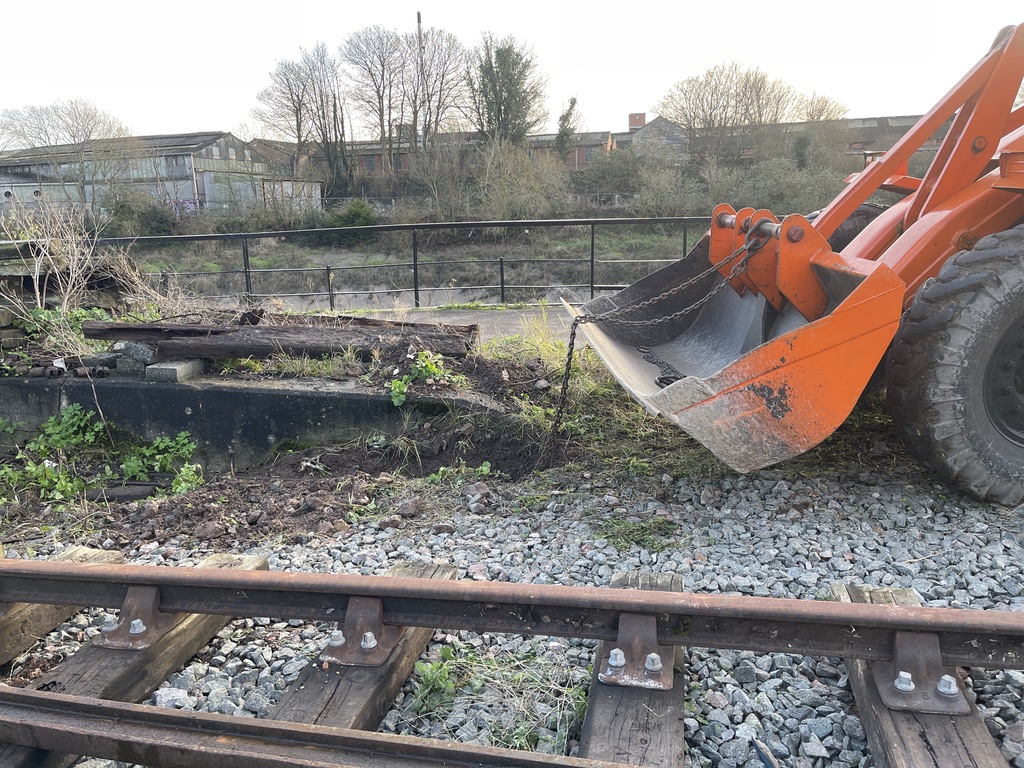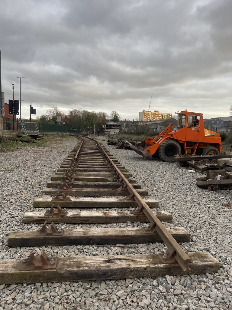 Day 3 must have been busy because I took barely any photos! There was a lot of faffing around dragging various rails out of the pile and then finding that they were too badly worn to be used for the running line. The good stuff was buried further down.