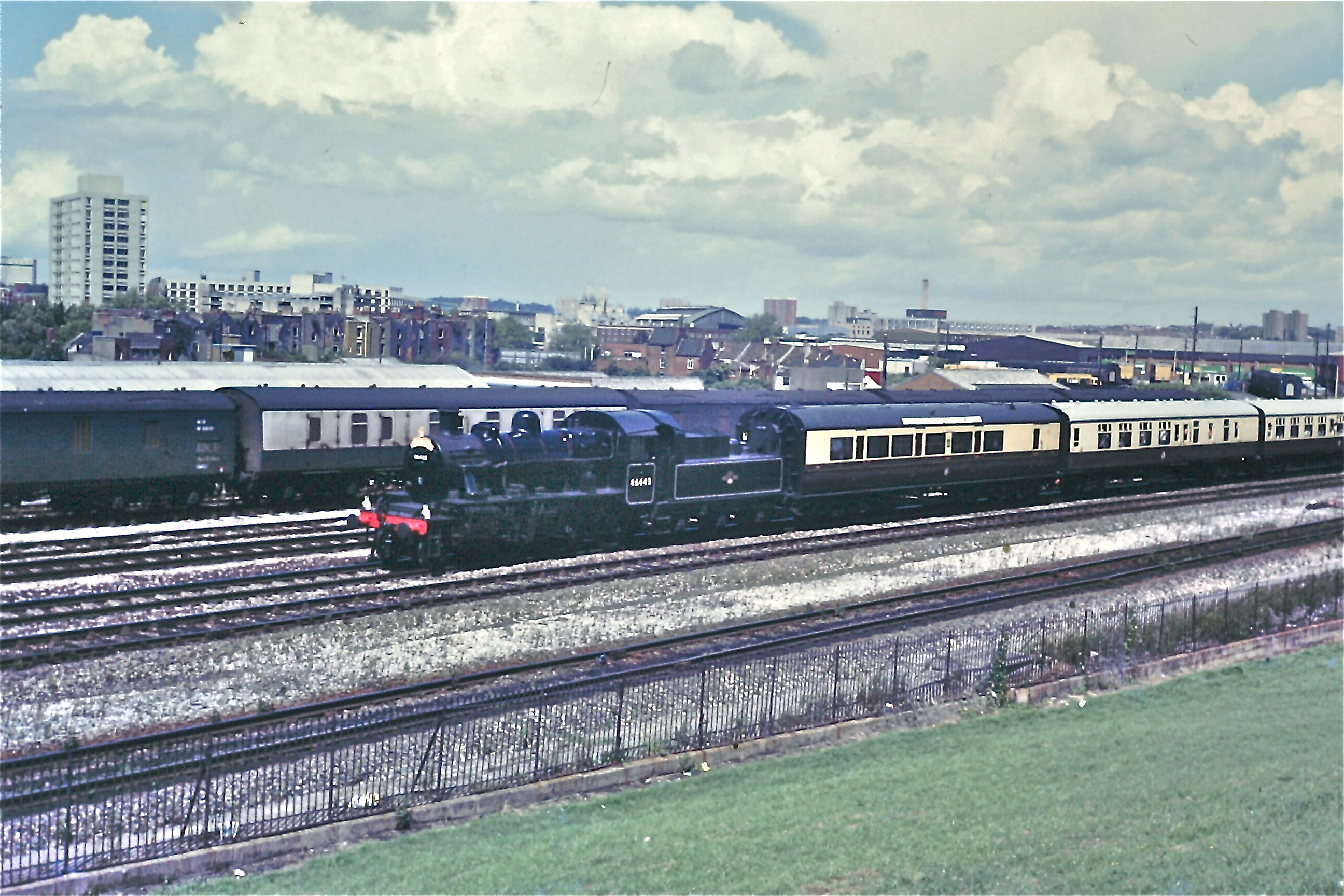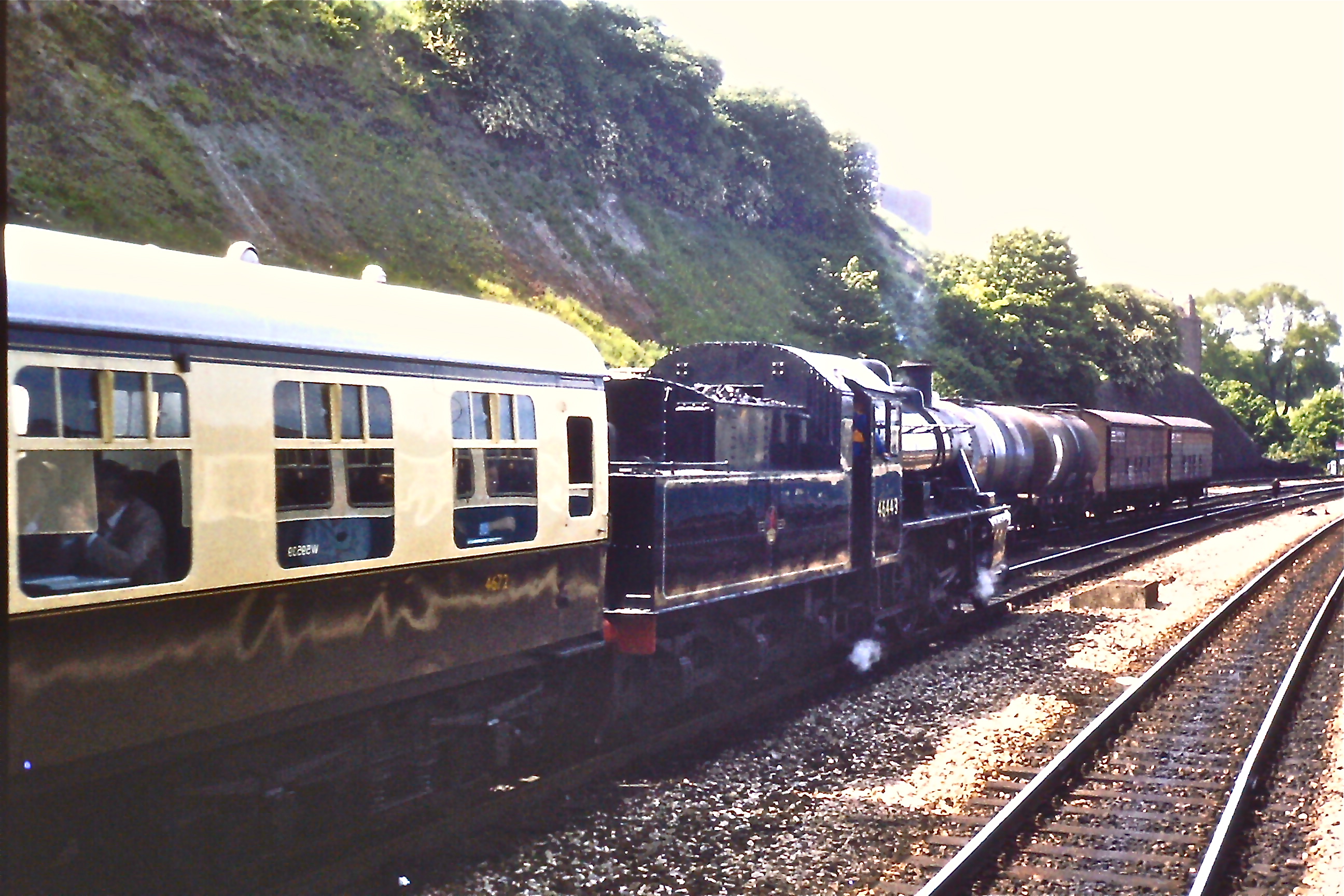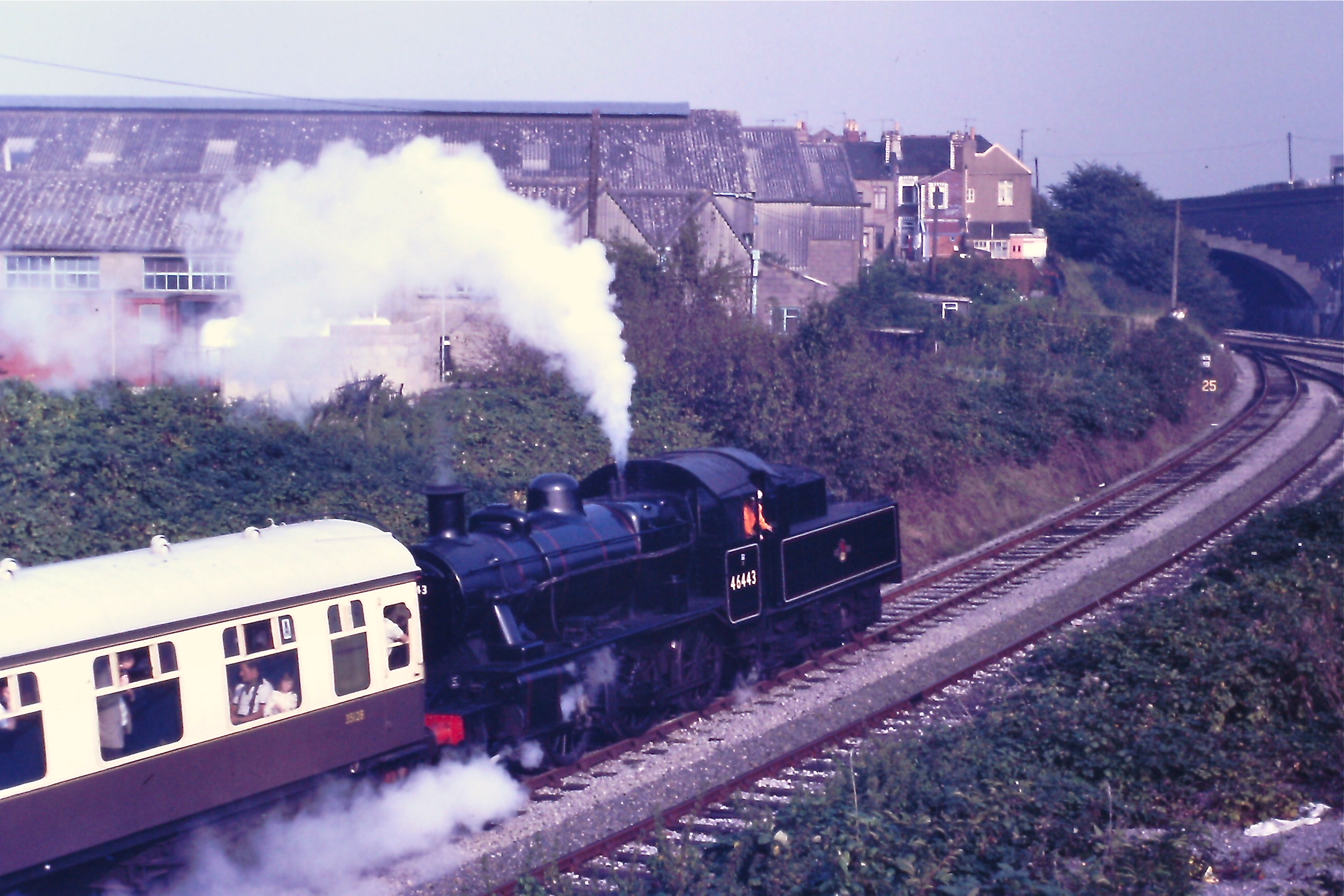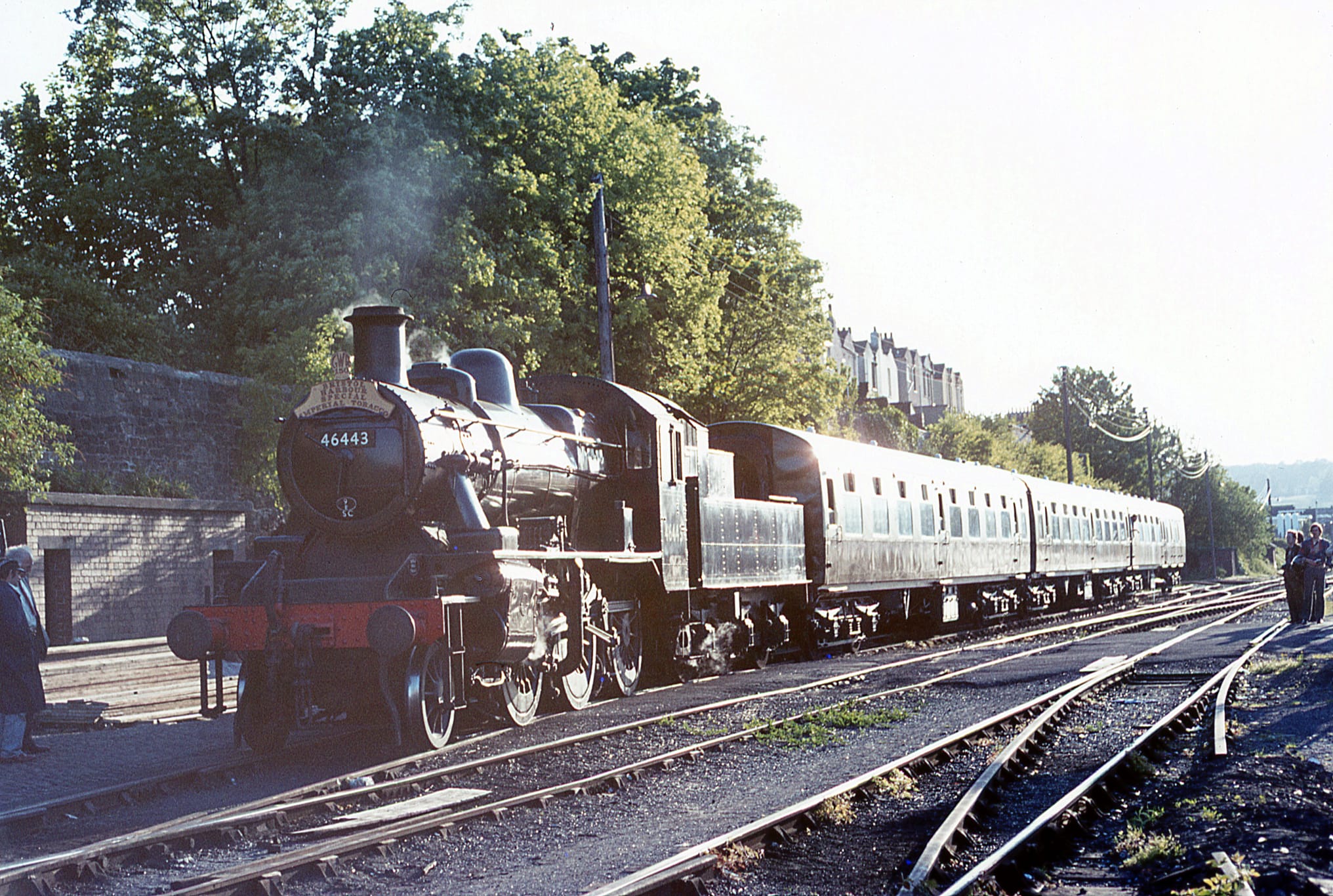 These ‘Bristol Harbour Specials’ were sponsored by Imperial Tobacco and featured Ivatt 2MT Mogul (this type was nicknamed ‘Mickey Mouse’ by enthusiasts) No. 46443 and three chocolate and cream Mk1 coaches.