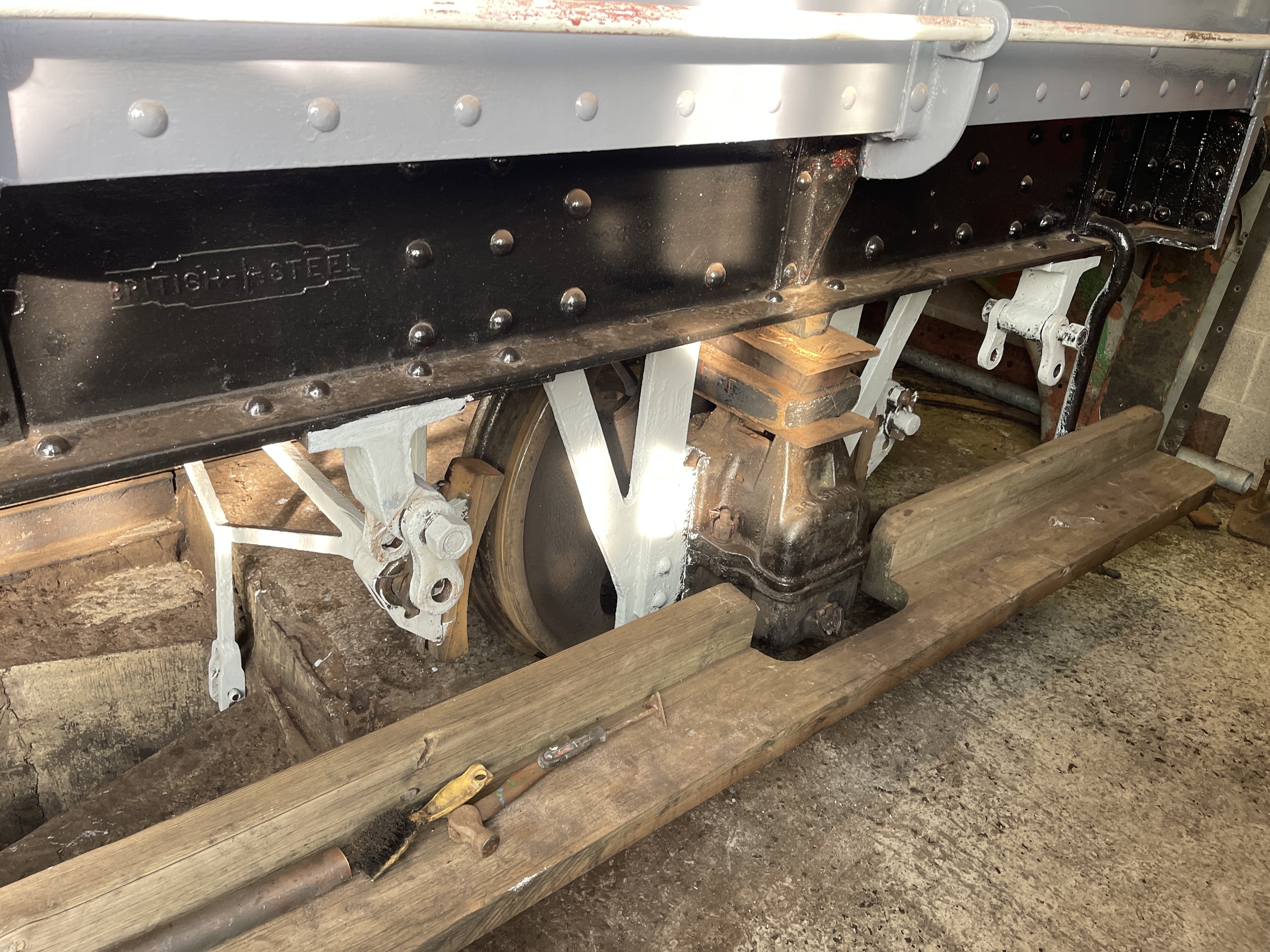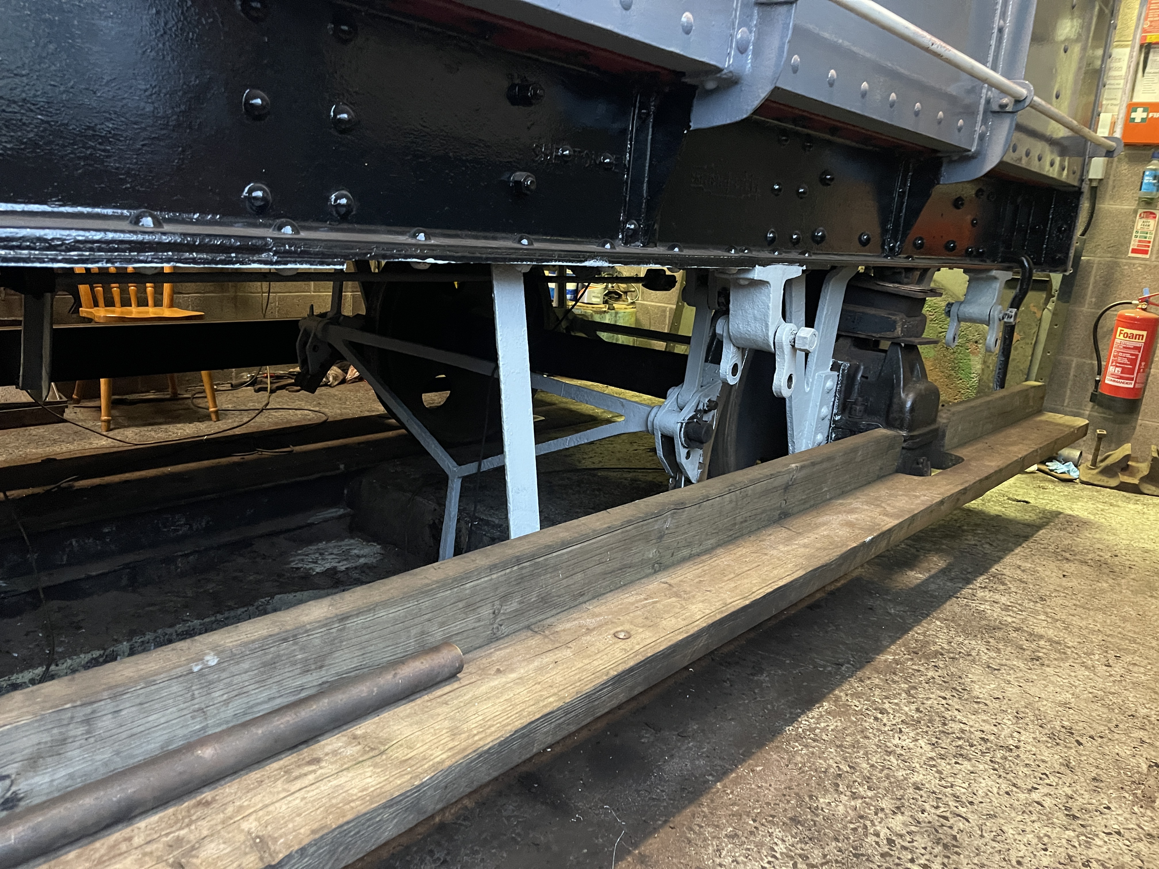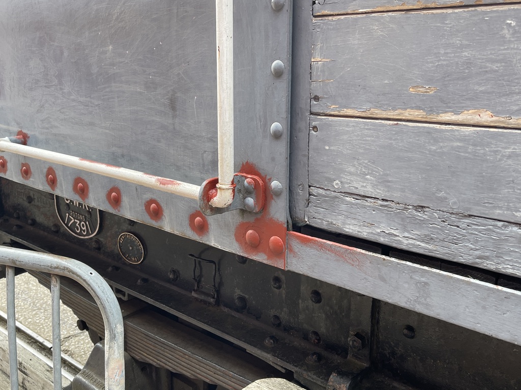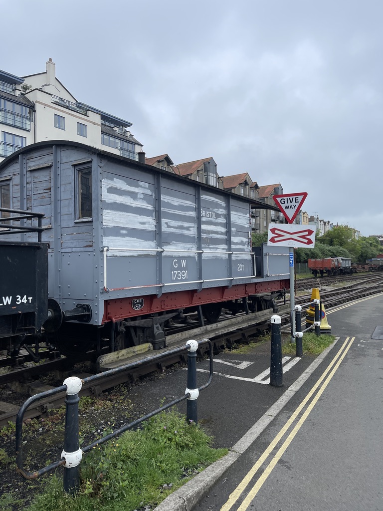 The Toad brake van has been receiving some tender loving care, including replacement wood and repainting. This involves shunting it on to the quayside so it can be outside the workshop.