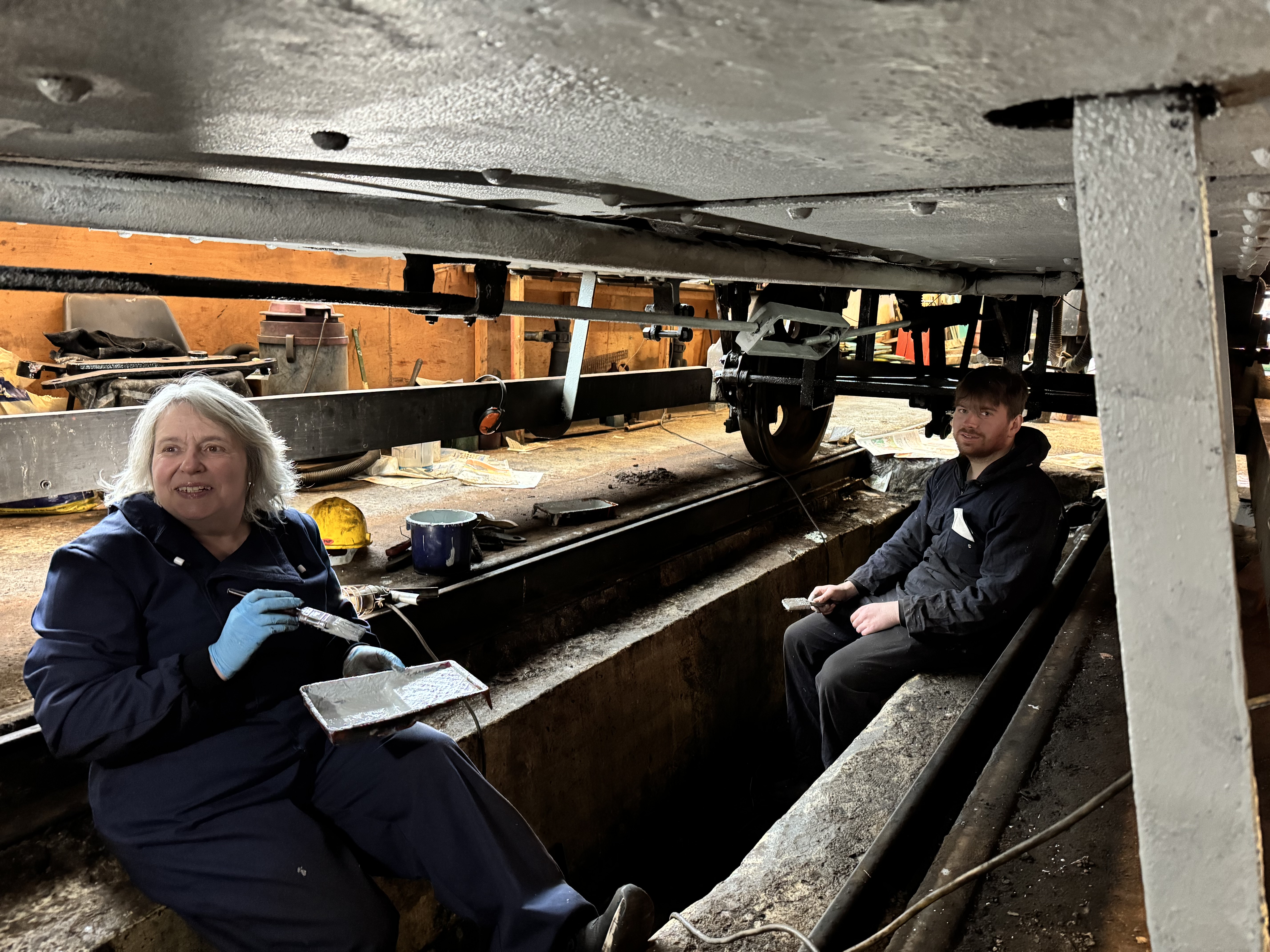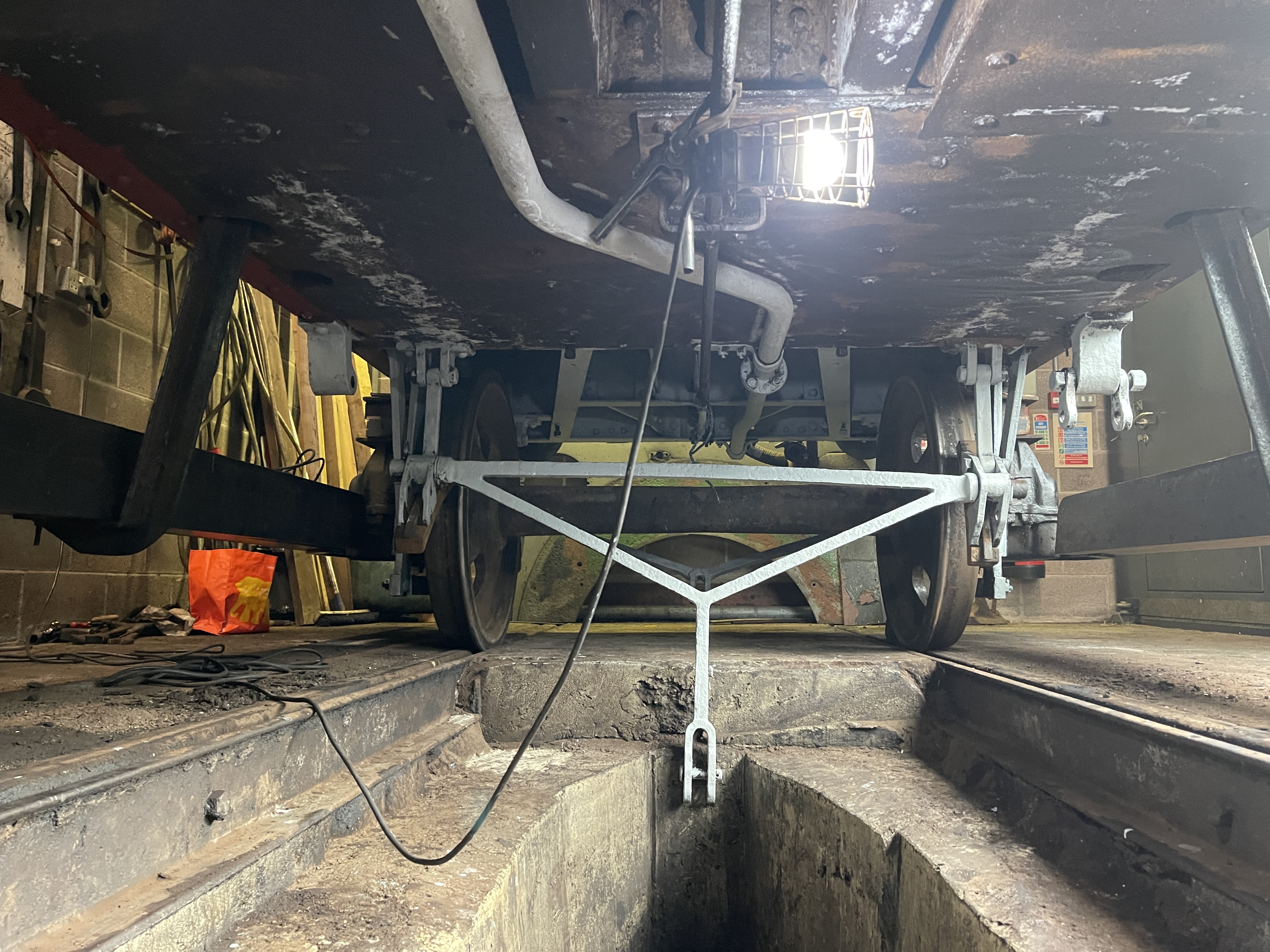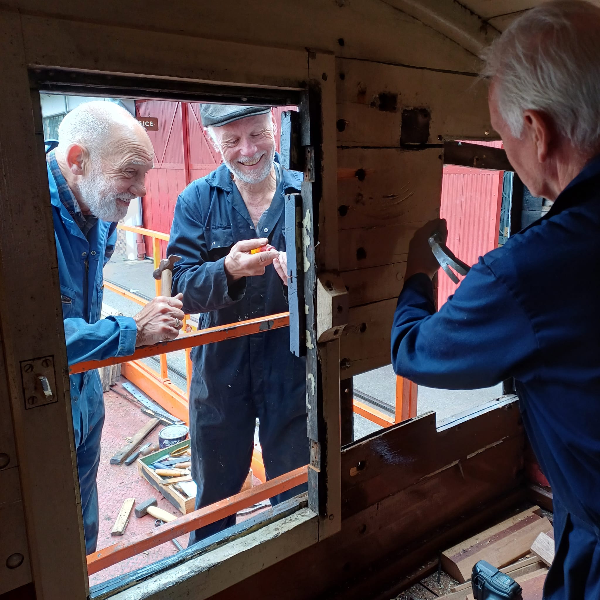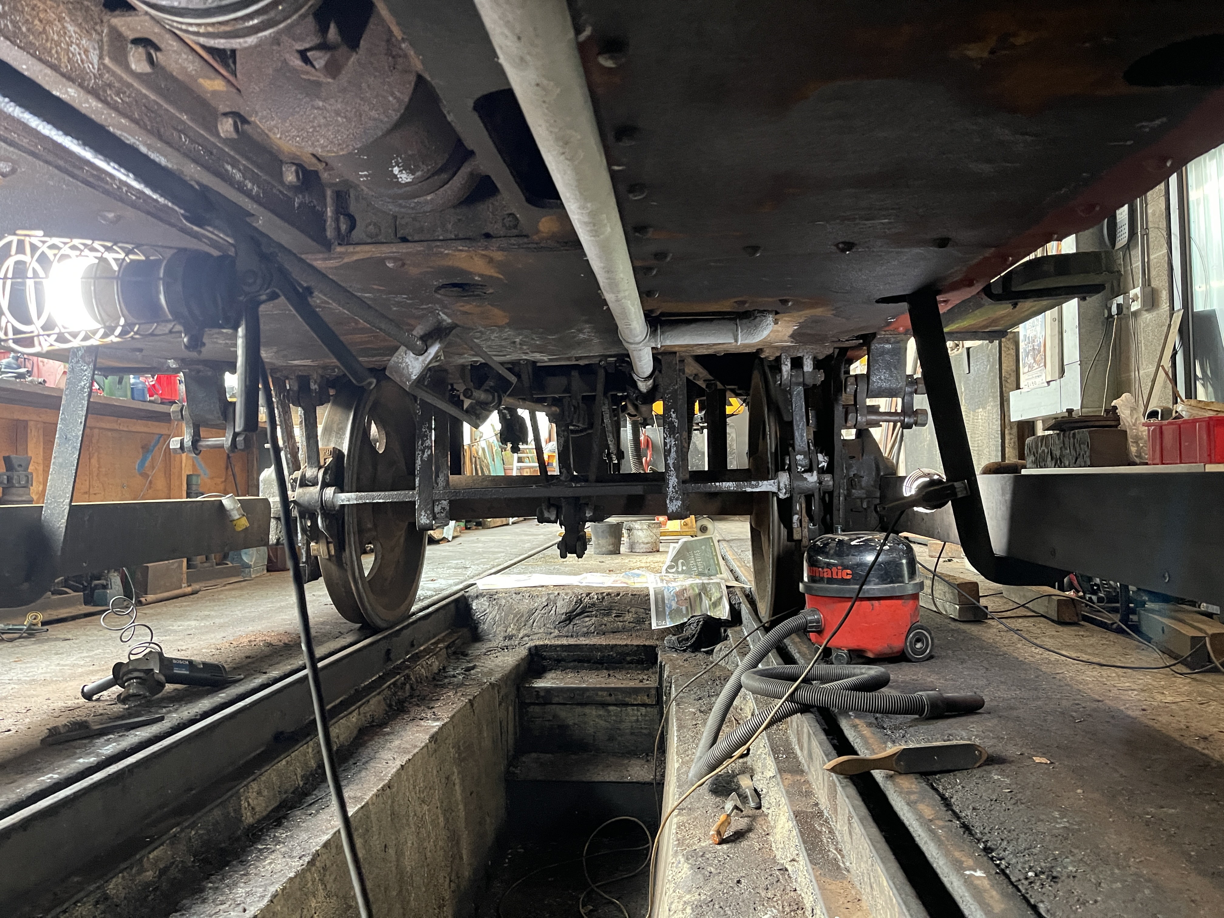 The Toad brake van has been receiving some tender loving care, including replacement wood and repainting. This involves shunting it on to the quayside so it can be outside the workshop.