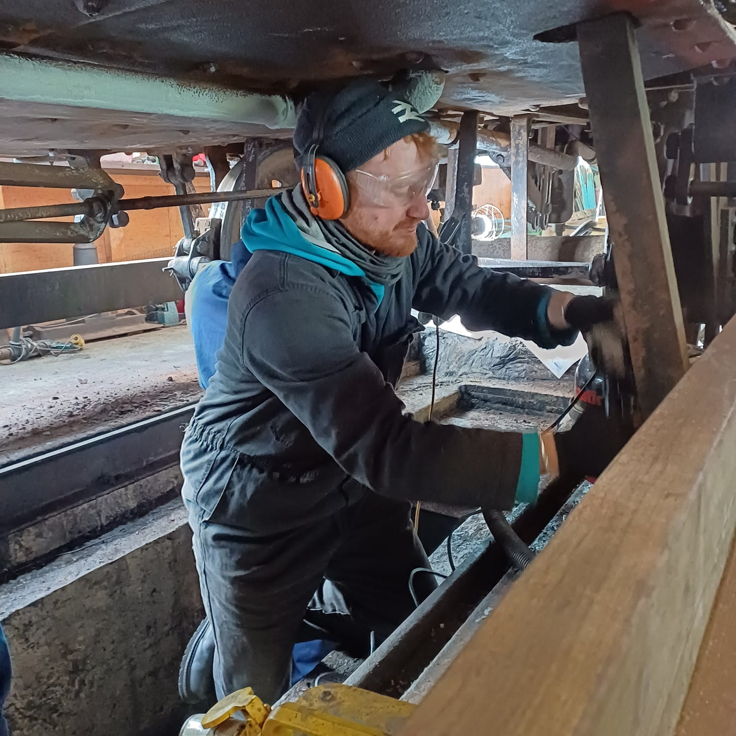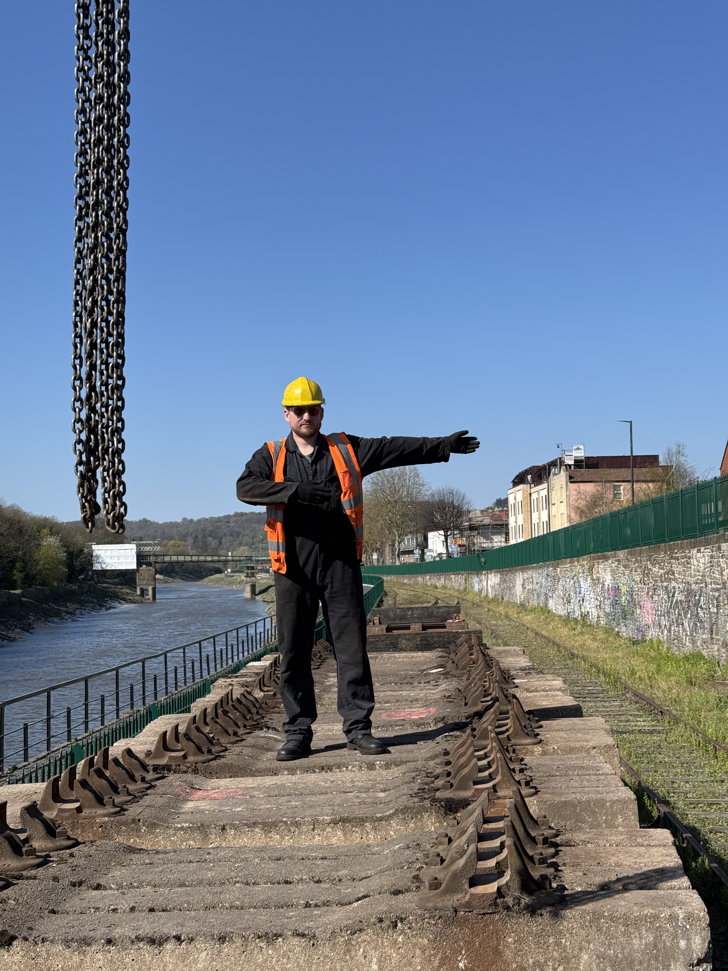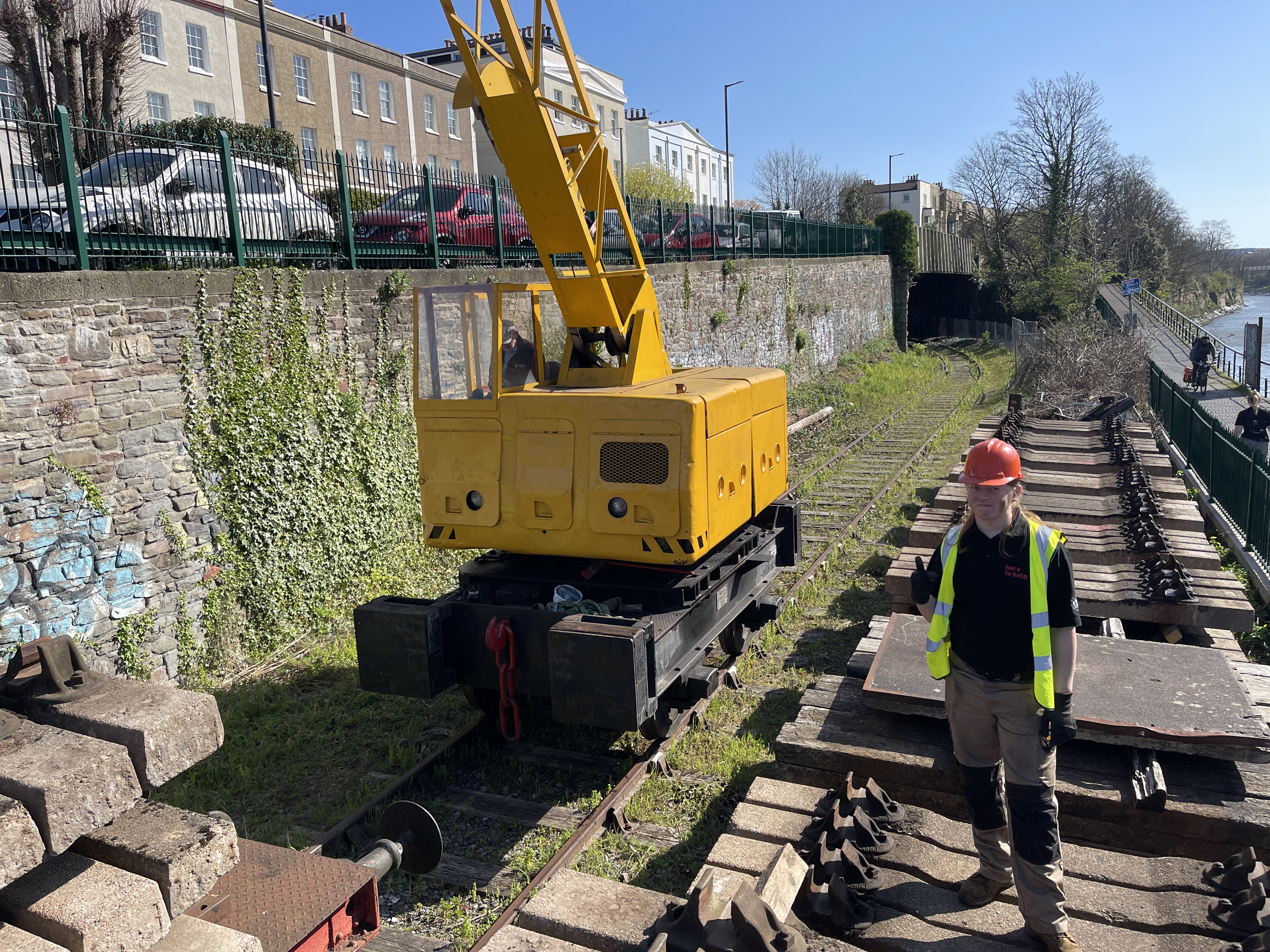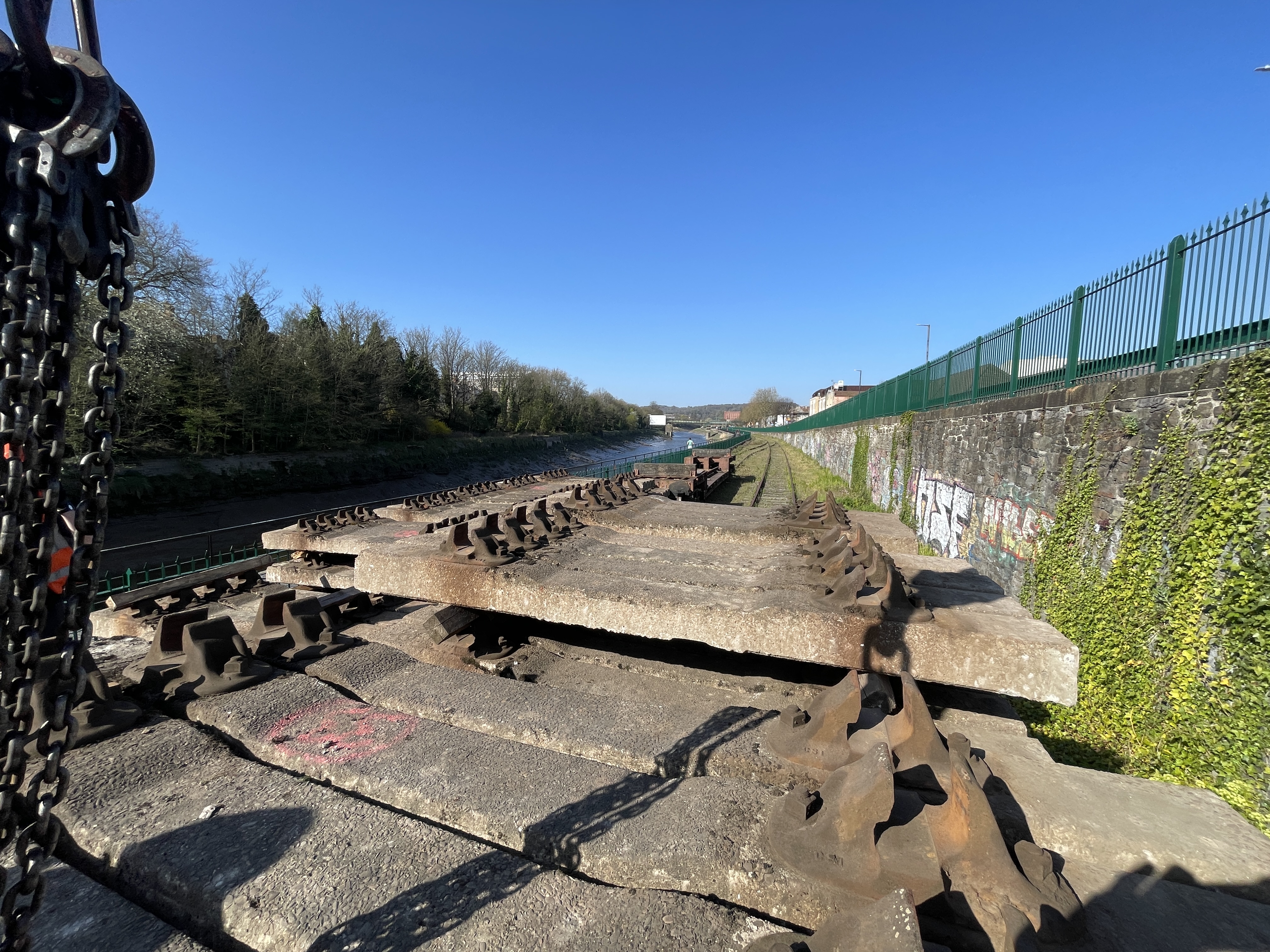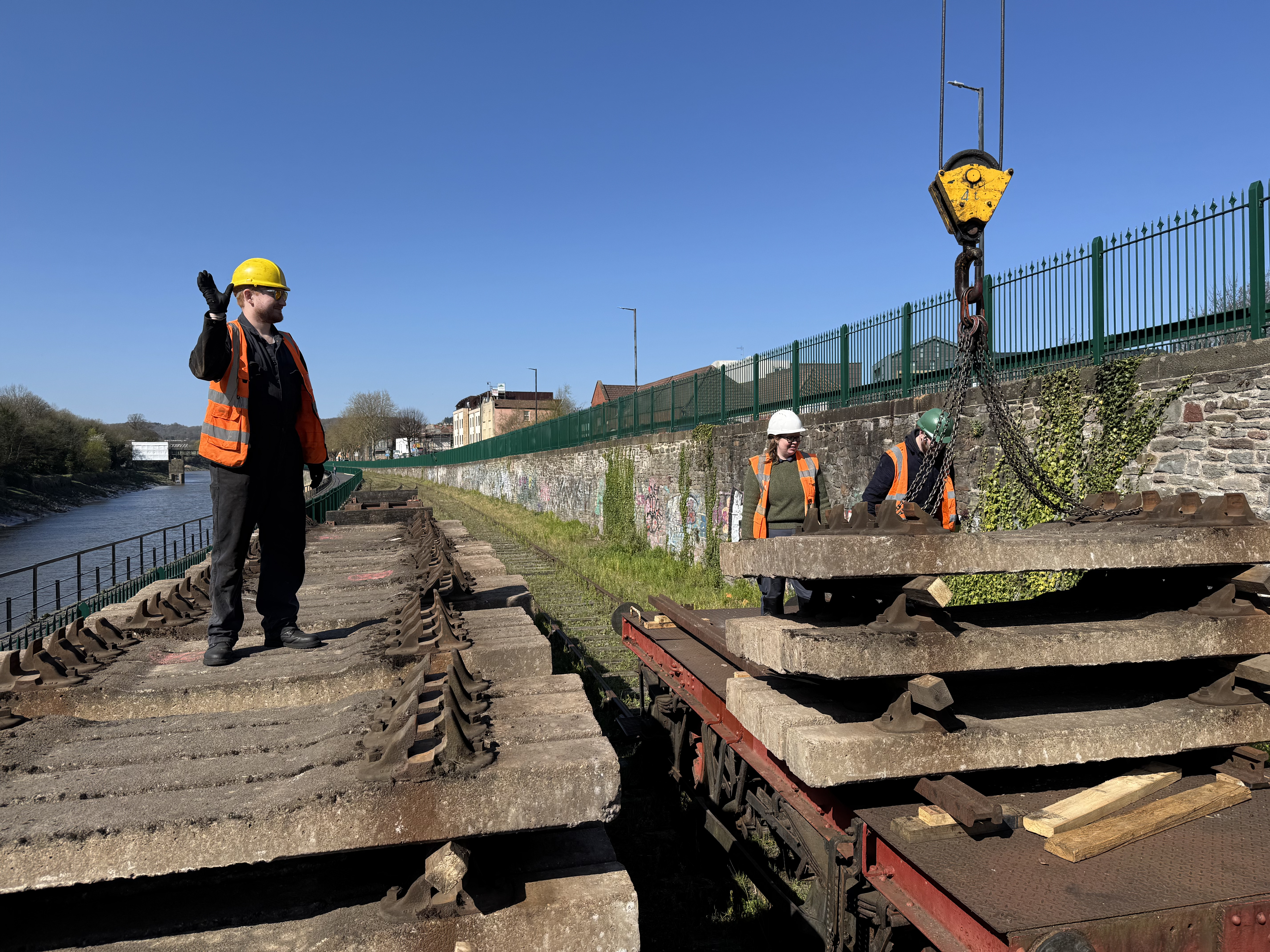 We put our cargo handling and crane direction training as seen at Docks Heritage Weekend to good use. Using the brothers (dual chain hooks) enables 2 sleepers to be loaded at a time and stacked neatly on the siding.