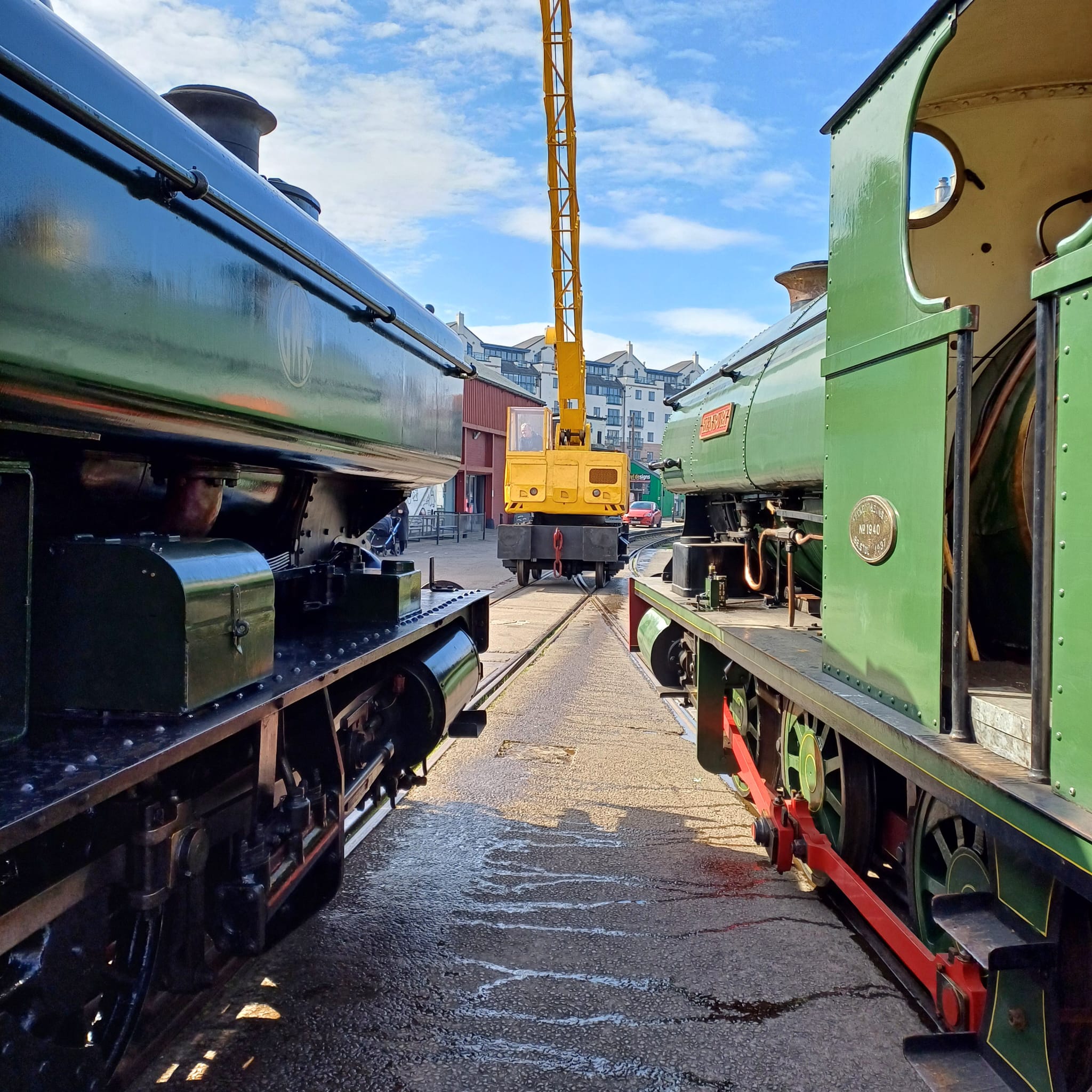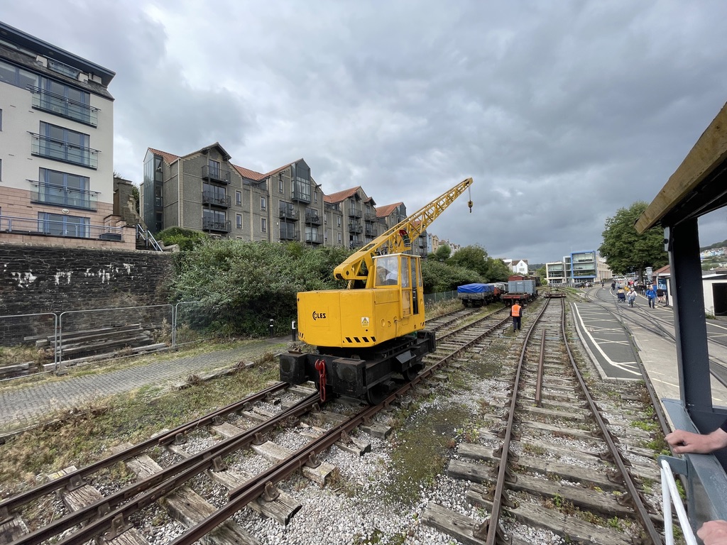 Staff and volunteers have been putting the time in, prepping the area around the station now that the contractors have moved out. Track that had been stored alongside A Bond has been pulled out, sleepers sorted into no-hopers vs. reusable ones, and roughly laid along the trackbed.